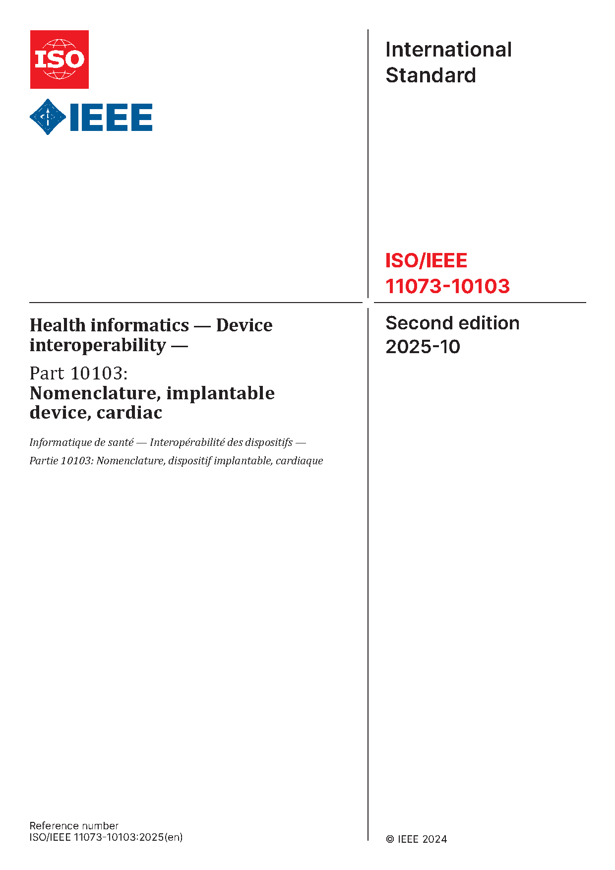 Health informatics--Point-of-care medical device communication Part 10103: Nomenclature--Implantable device, cardiac