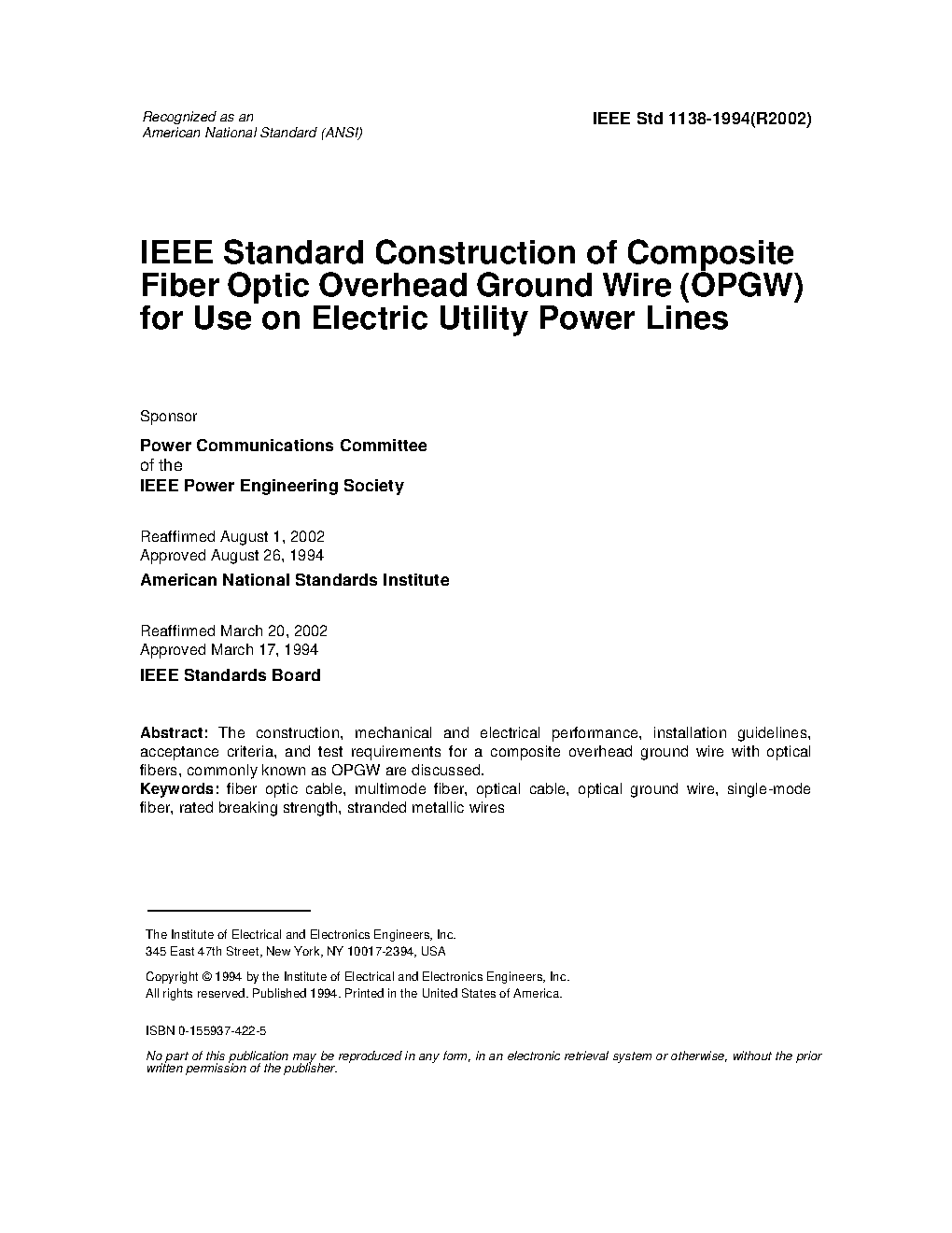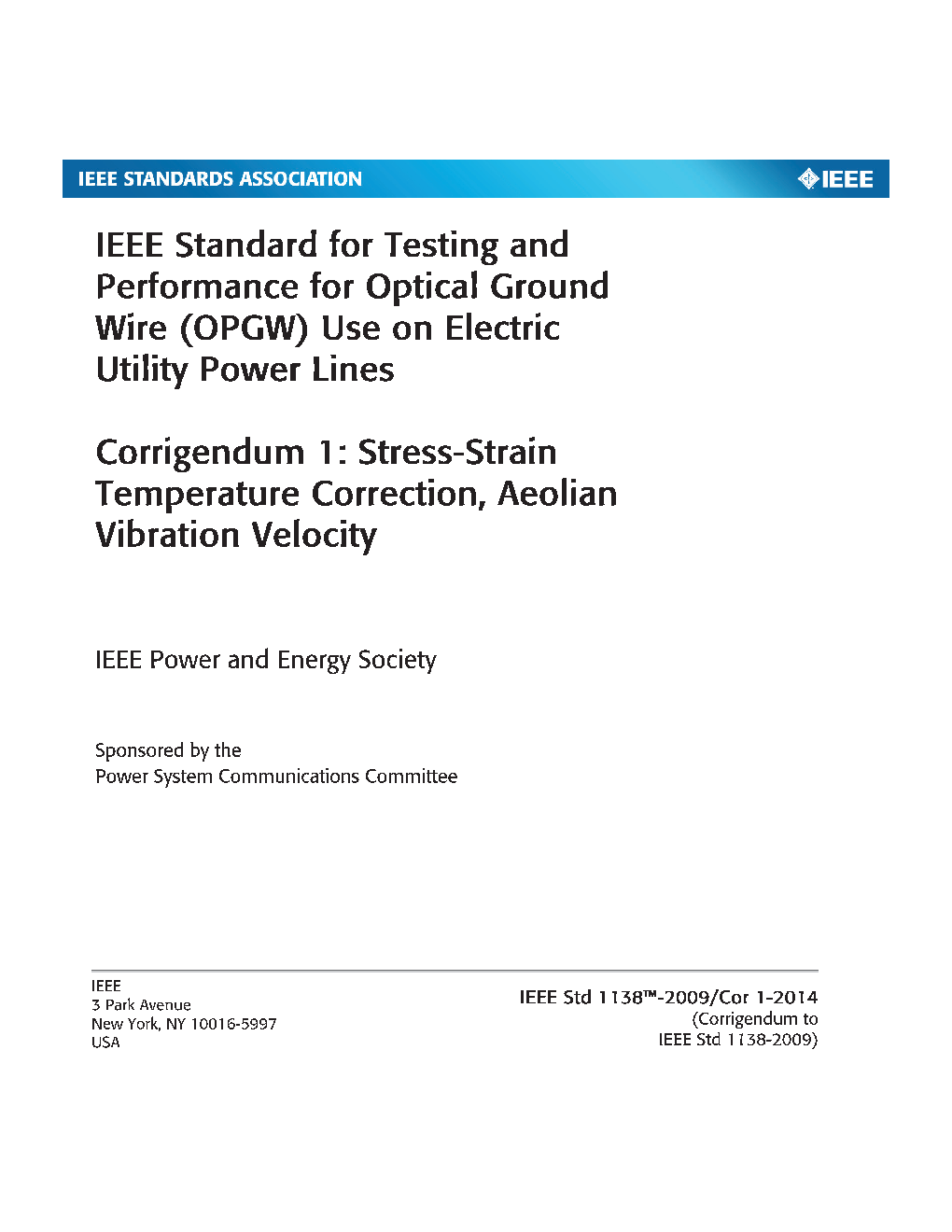 This corrigendum corrects the temperature associated with the Stress-Strain clause; and corrects the use of the term velocity in the Aeolian Vibration clause of IEEE Std 1138(TM)-2009.