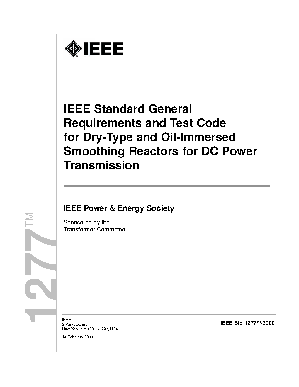 IEEE Standard General Requirements and Test Code for Dry-Type and Oil-Immersed Smoothing Reactors for DC Power Transmission