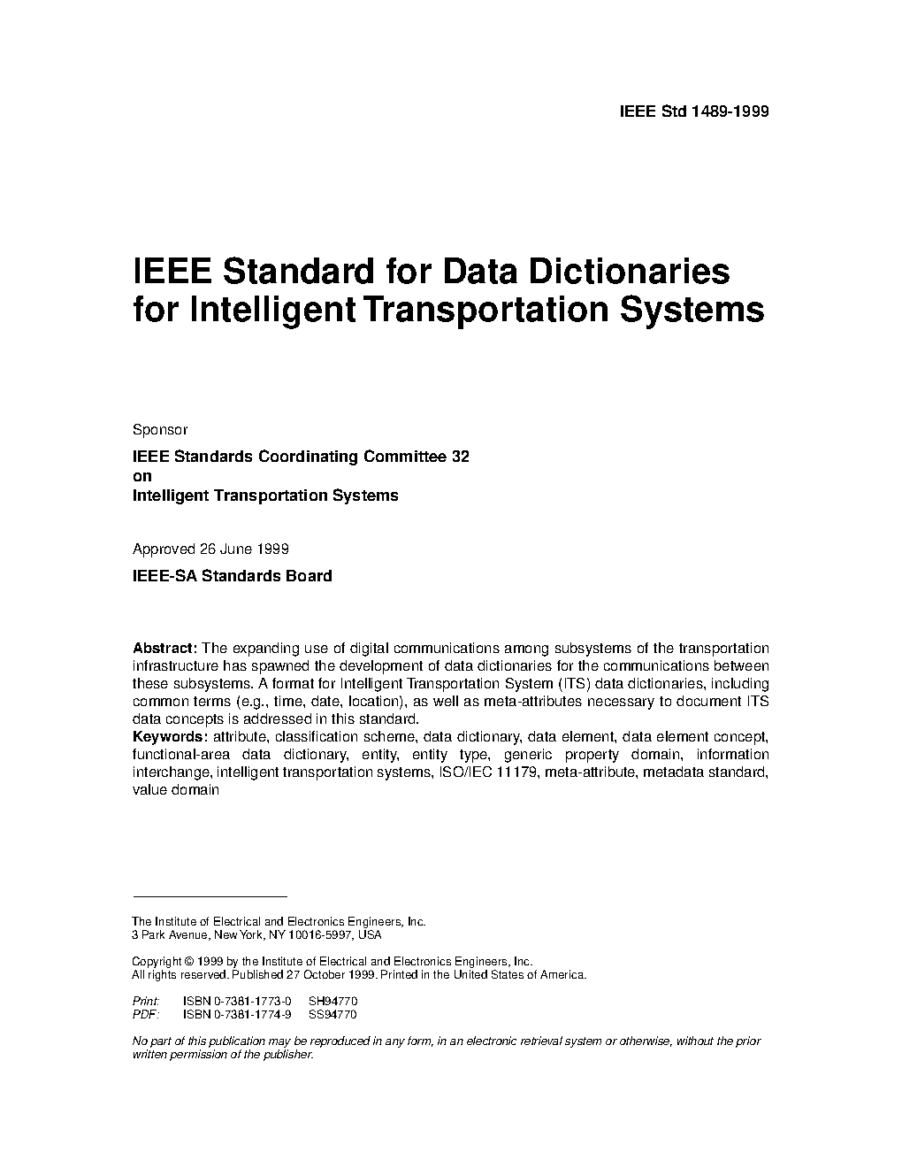 IEEE Standard for Data Dictionaries for Intelligent Transportation Systems