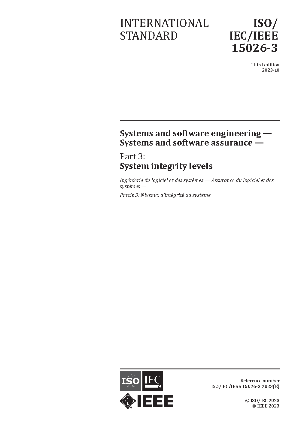 IEEE Standard Adoption of ISO/IEC 15026-3 -- Systems and Software Engineering -- Systems and Software Assurance -- Part 3: System Integrity Levels