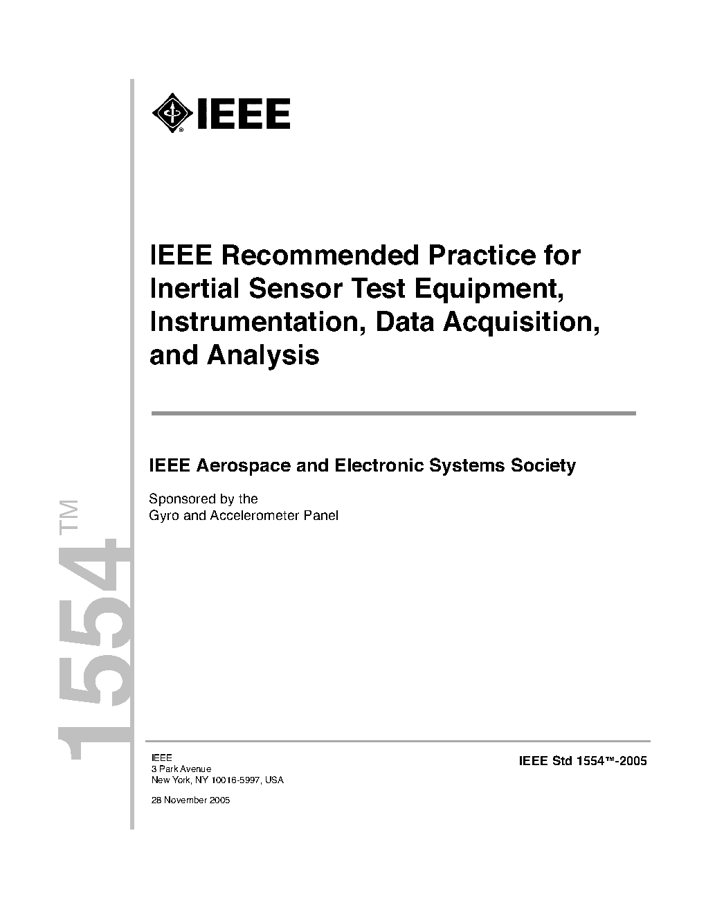 IEEE Recommended Practice for Inertial Sensor Test Equipment, Instrumentation, Data Acquisition, and Analysis