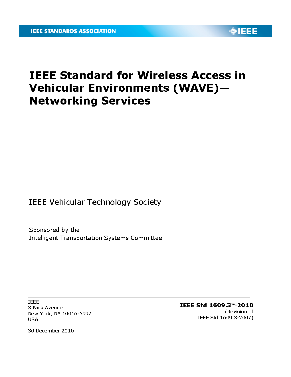 IEEE Standard for Wireless Access in Vehicular Environments (WAVE)--Networking Services