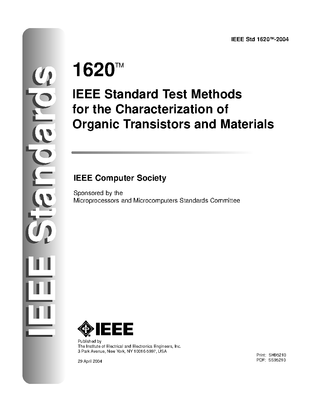 IEEE Standard for Test Methods for the Characterization of Organic Transistors and Materials