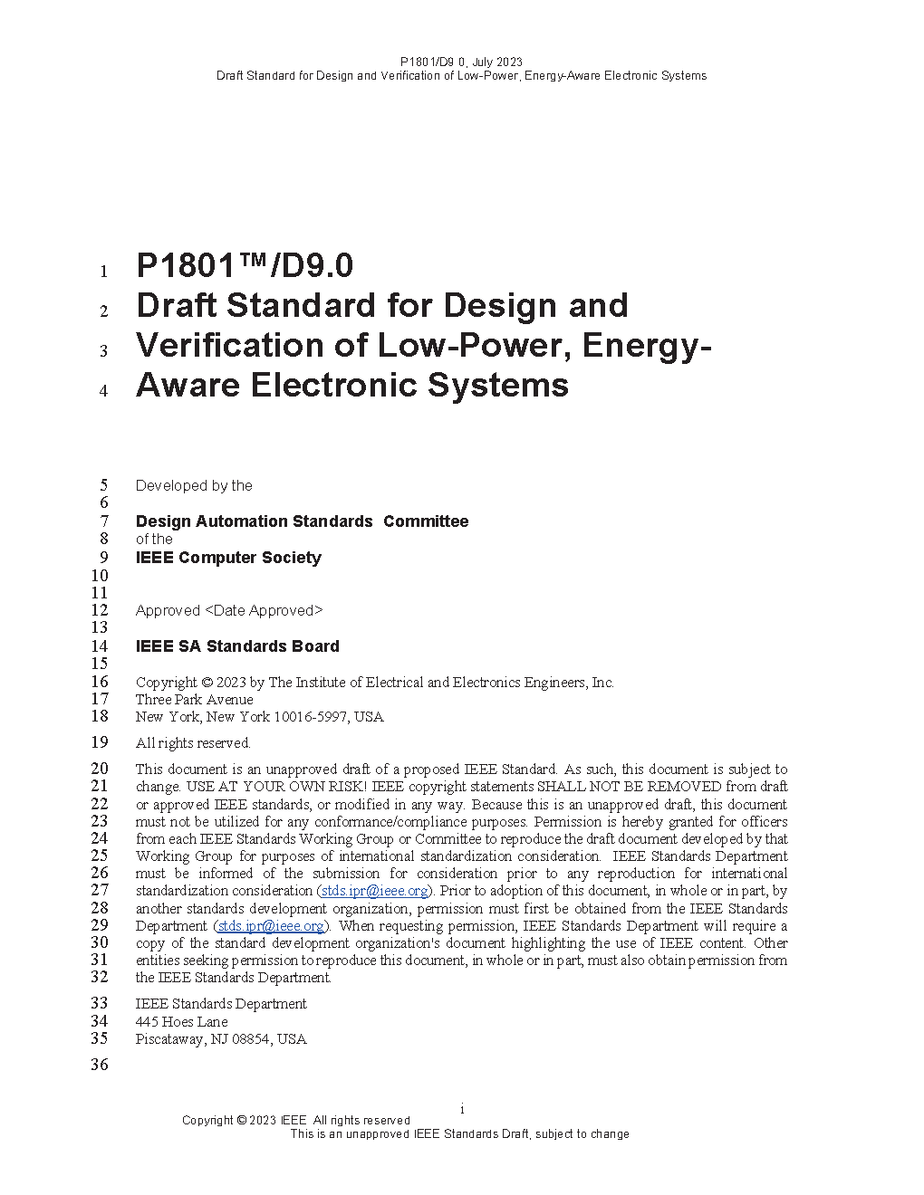 IEEE Draft Standard for Design and Verification of Low Power, Energy Aware Electronic Systems