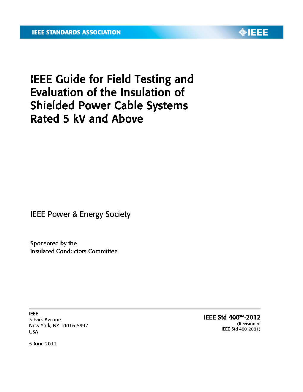 This Guide lists the various field test methods that are currently available or underdevelopment with guidance on HOW to perform each test. The Guide covers shielded, insulatedpower cable systems rated 5 kV through 500 kV unless these voltages are modified by the specific "point" document.