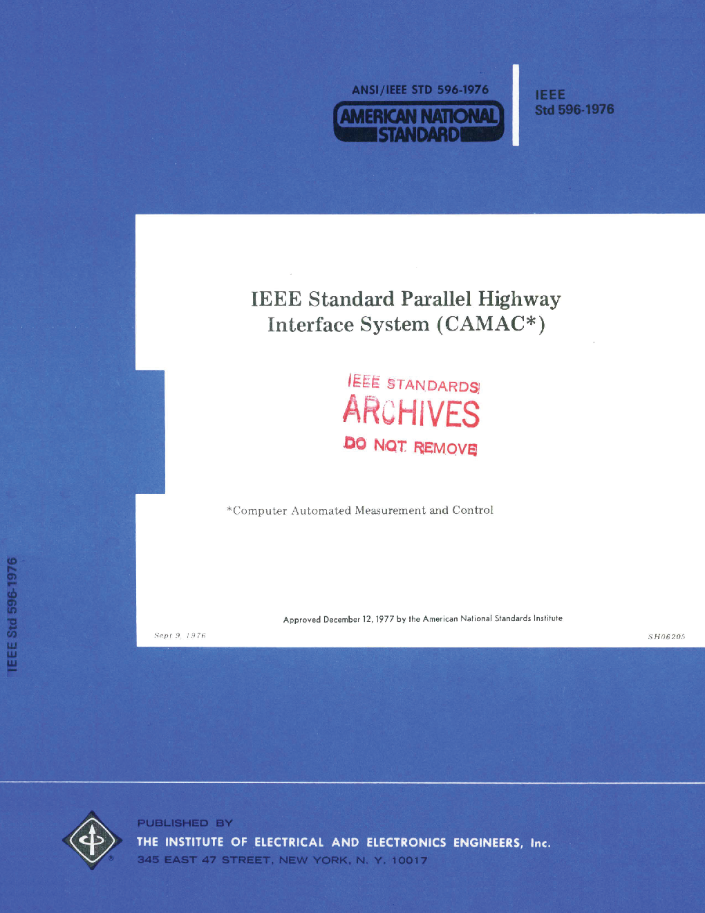IEEE Standard Parallel Highway Interface System (CAMAC) (Computer Automated Measurement and Control)
