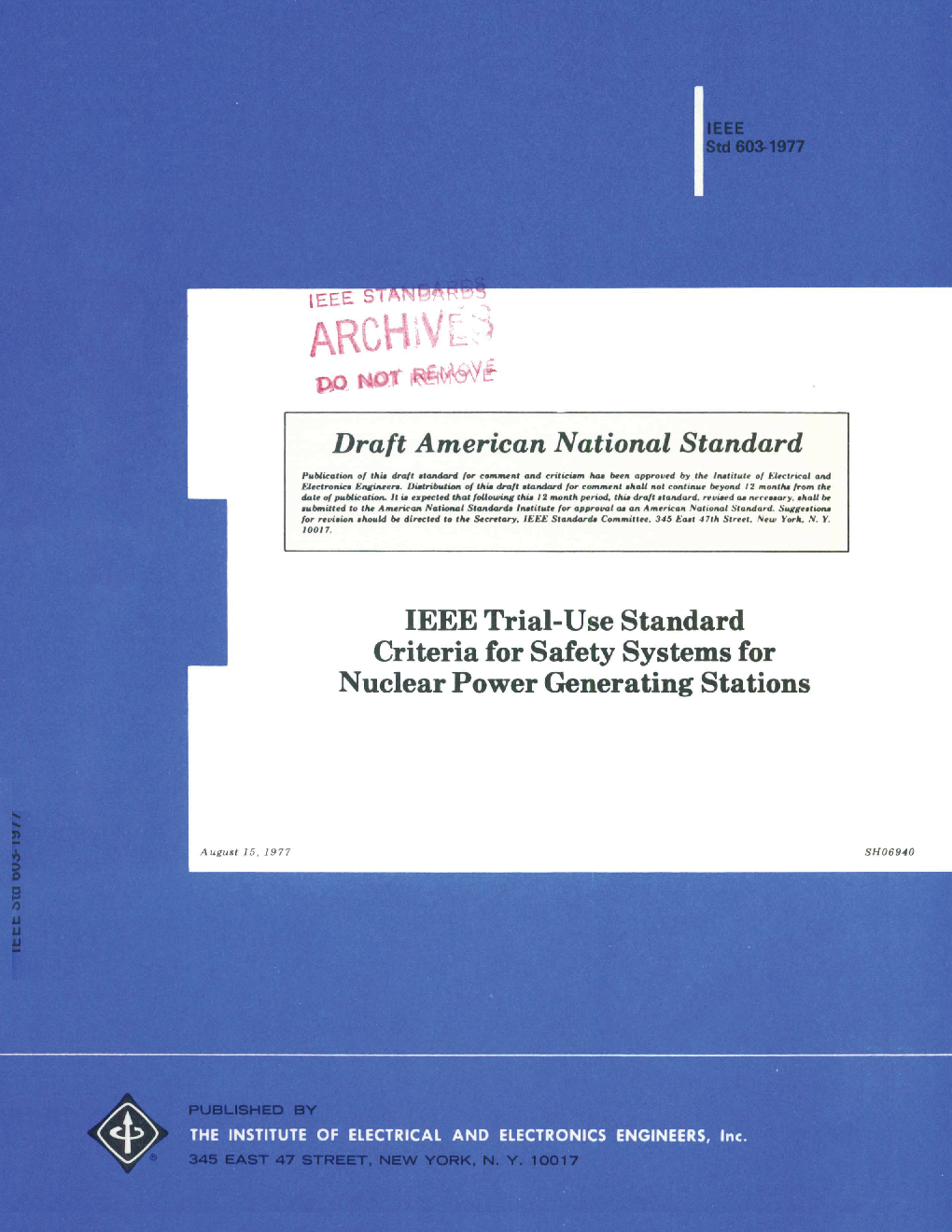 IEEE Standard Criteria for Safety Systems for Nuclear Power Generating Stations