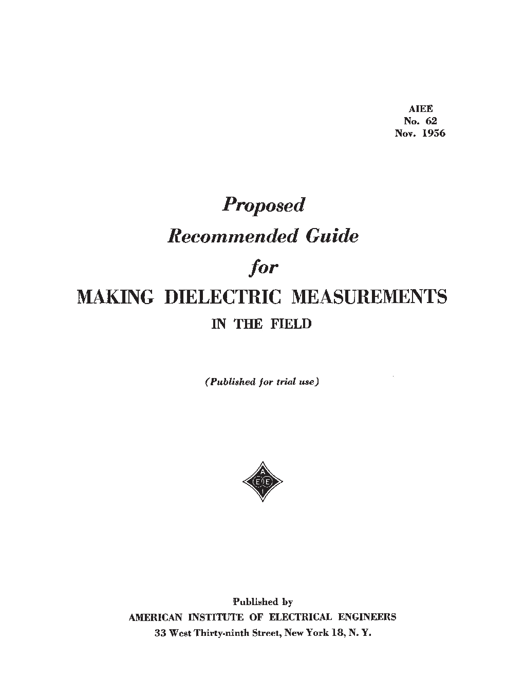 This guide describes diagnostic tests and measurements that are performed in the Þeld on oil-immersed power transformers and regulators. Whenever possible, shunt reactors are treated in a similar manner to transformers. The tests are presented systematically in categories depending on the subsystem of the unit being examined. A diagnostic chart is included as an aid to identifying the various subsystems. Additional information is provided regarding specialized test and measuring techniques. Interpretive discussions are also included in several areas to provide additional insight on the particular test, or to provide guidance on acceptance criteria. These discussions are based on the authorsÕ judgement of accepted practice. It should be noted that sometimes the results of several types of tests should be interpreted together to diagnose a problem. ManufacturerÕs acceptance criteria should also be consulted as it may take precedence over the criteria in this guide.