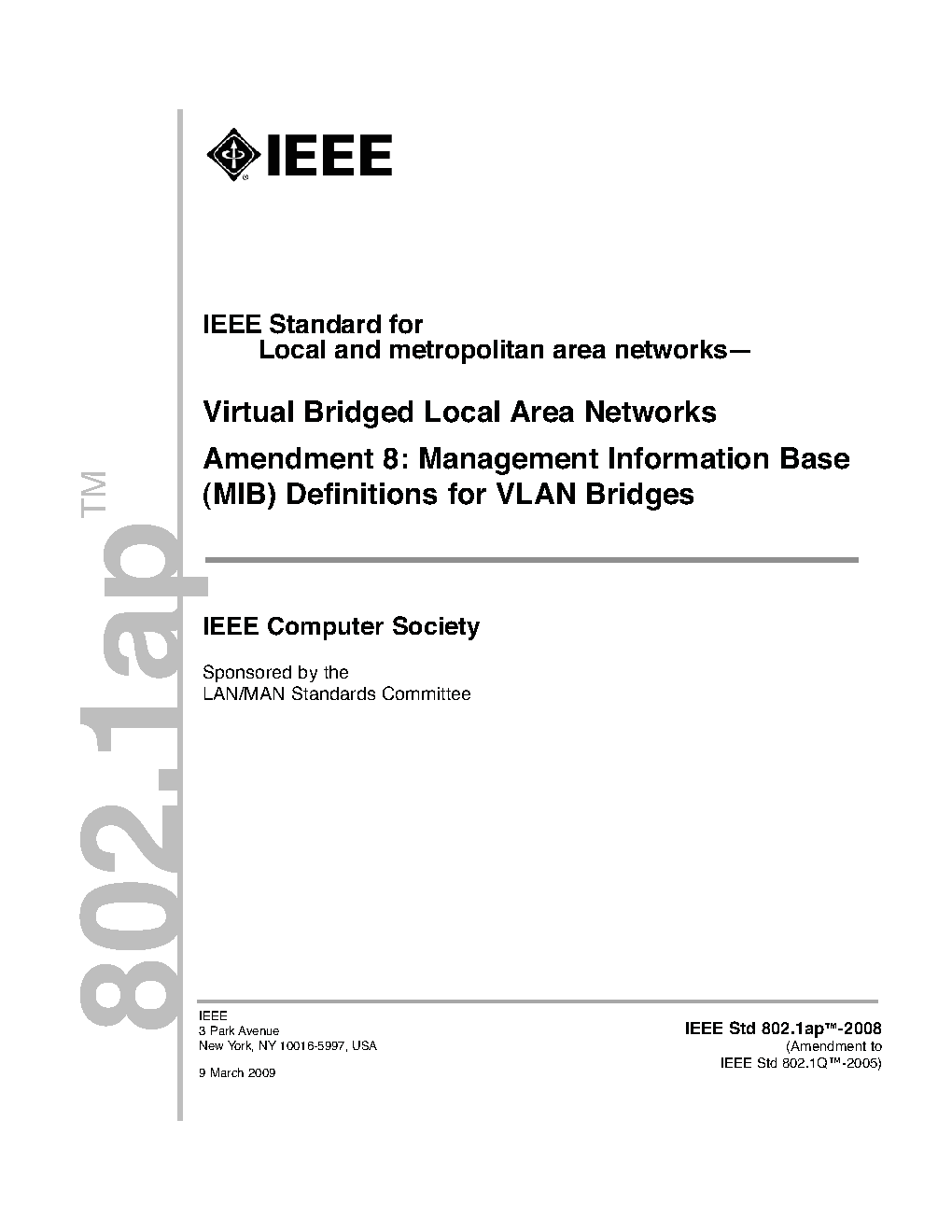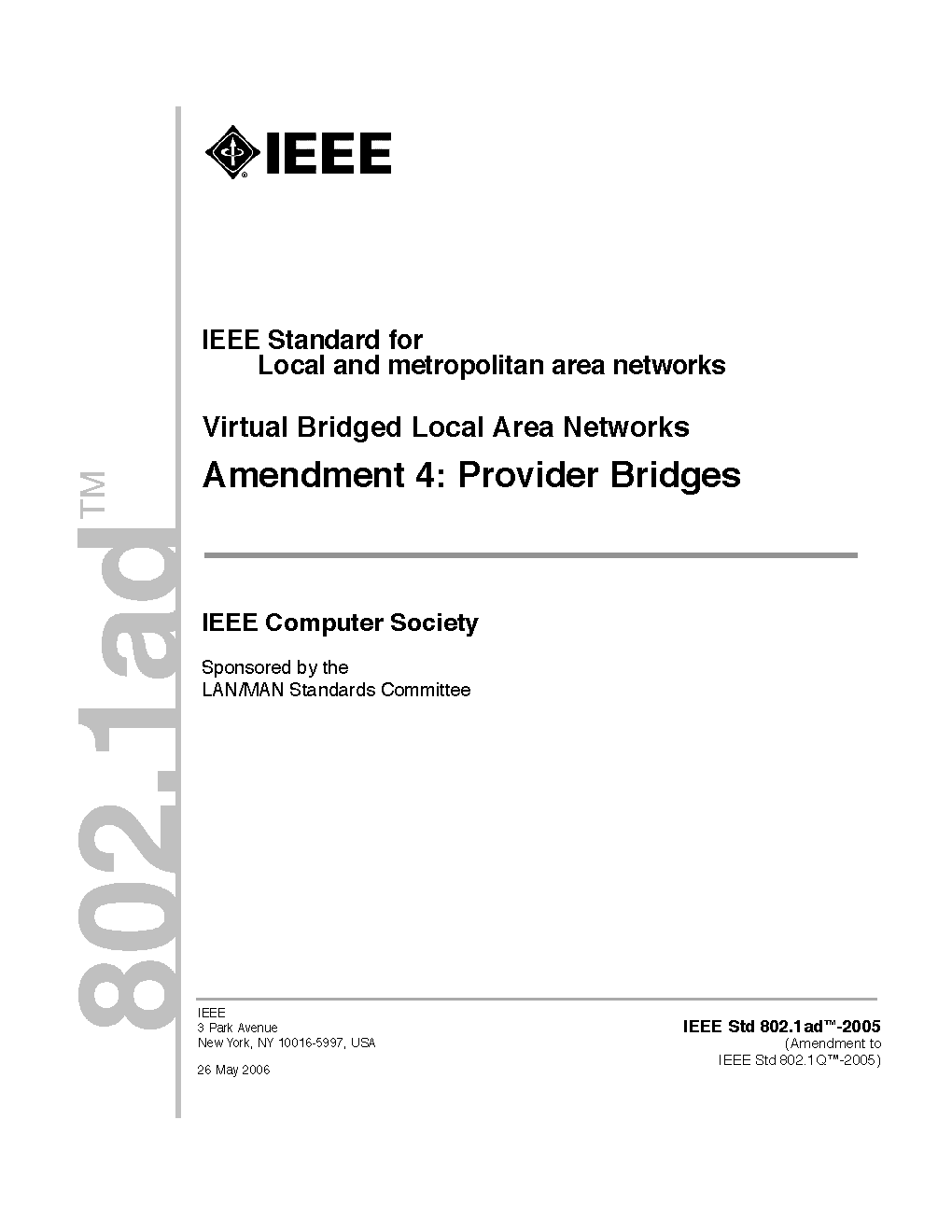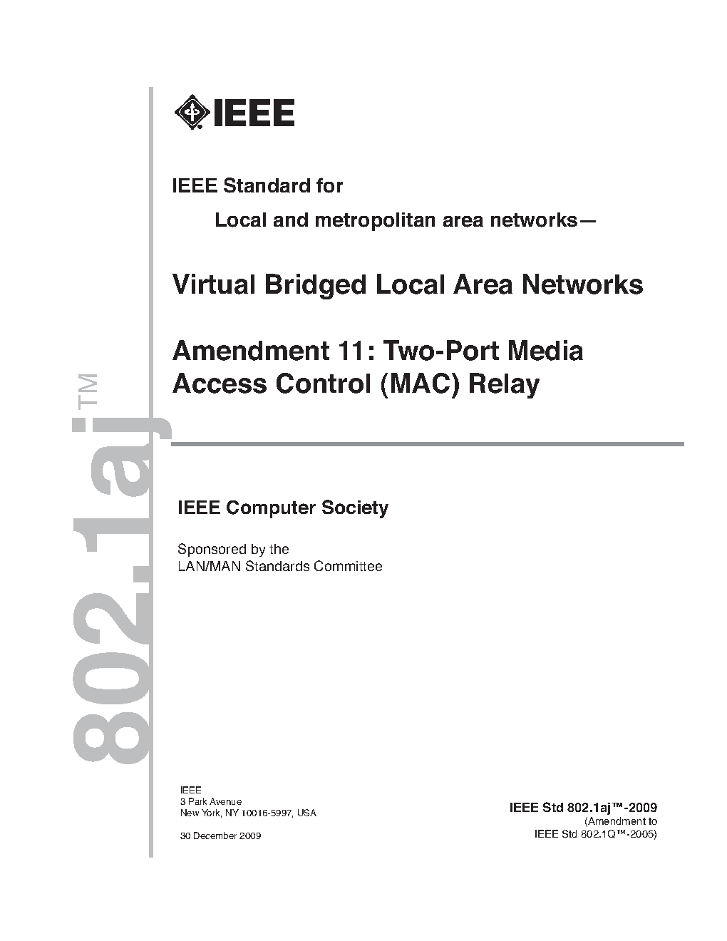 This amendment to IEEE Std 802.1Q specifies the function of a MAC Relay with two MACs, and the protocols and procedures to support its operation. A MAC Relay is transparent to all frame-based media independent protocols except those explicitly addressed to this device. It is remotely manageable through at least one of its external MACs, and signals a failure of either MAC's LAN through the other MAC.
