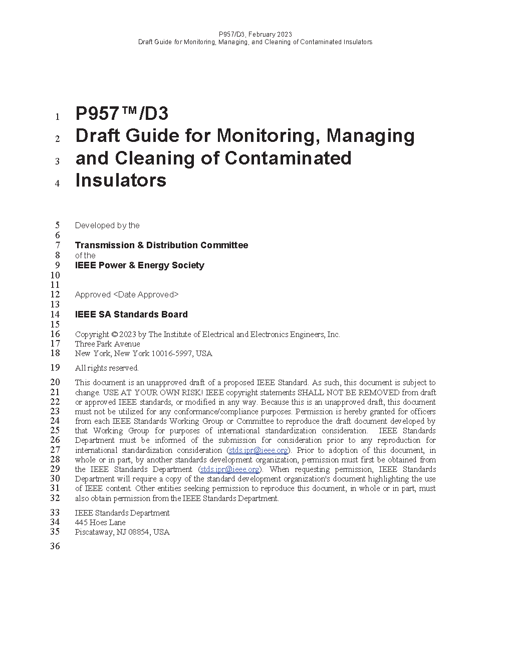 The scope of this guide for cleaning insulators is to document the procedures used for cleaning contaminated electrical insulators (excluding nuclear, toxic, and hazardous chemical contaminants), of all types, using varied equipment and techniques. Because of the great variety of conditions, practices, electrical system designs, and contamination possibilities, this guide is offered to describe a number of approaches to insulator cleaning on power systems. All factors must be considered to specific situations in deciding whether and how to use the information in this guide.