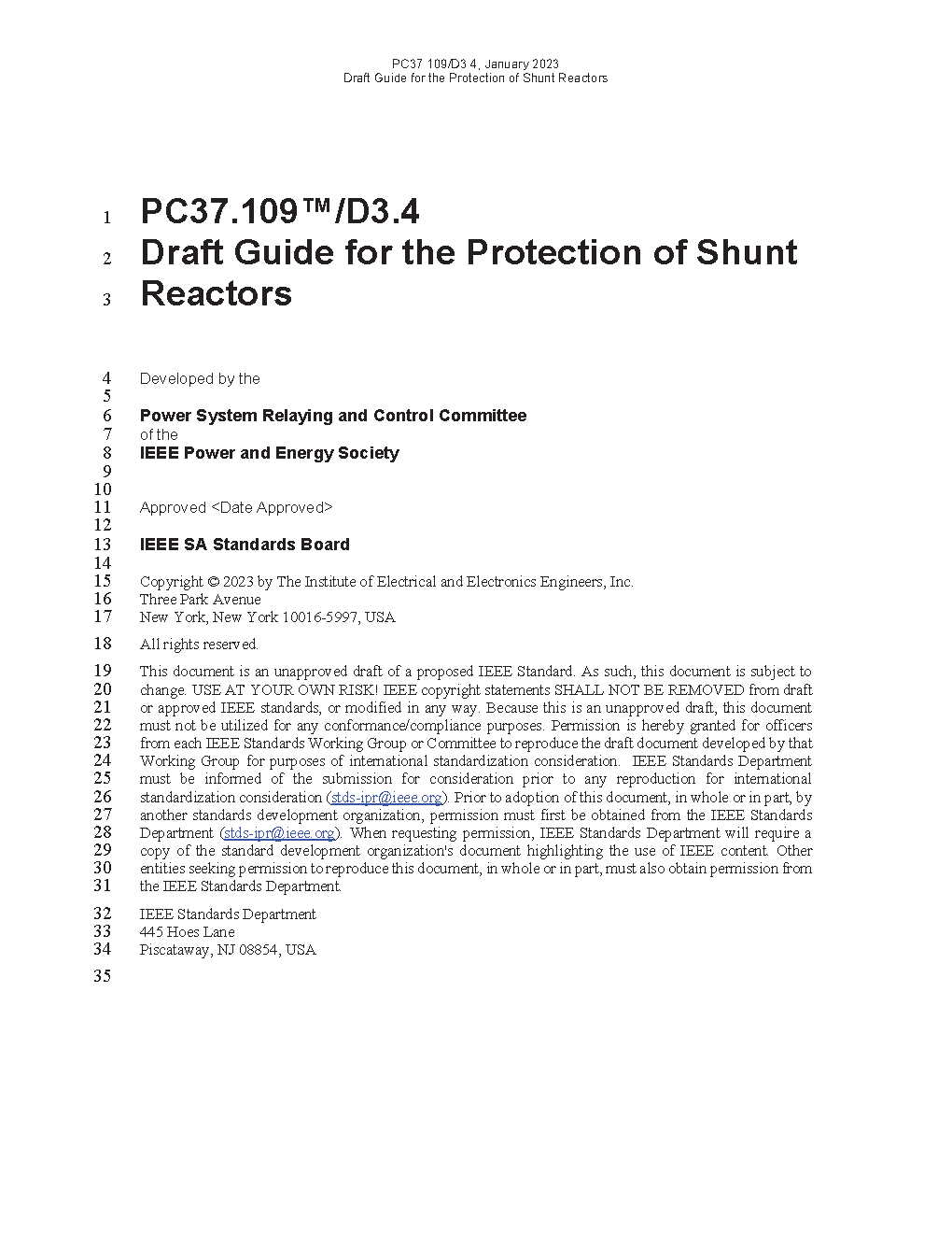 The purpose of this guide is to provide users of shunt reactors acceptable methods and configurations for the protection of power system shunt reactors.