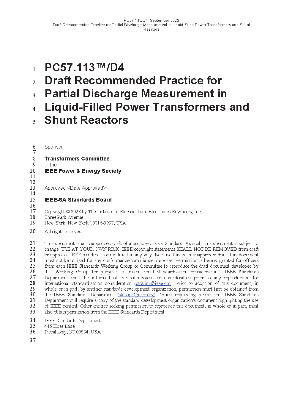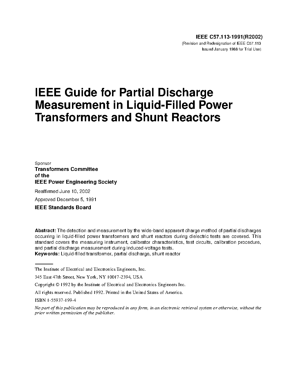 IEEE Recommended Practice for Partial Discharge Measurement in Liquid-Filled Power Transformers and Shunt Reactors