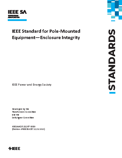 This standard covers conformance tests and requirements for the enclosure integrity of pole-mounted equipment containing apparatus energized in excess of 600 V, typically not accessible to the general public, such as but not limited to the following types of equipment: