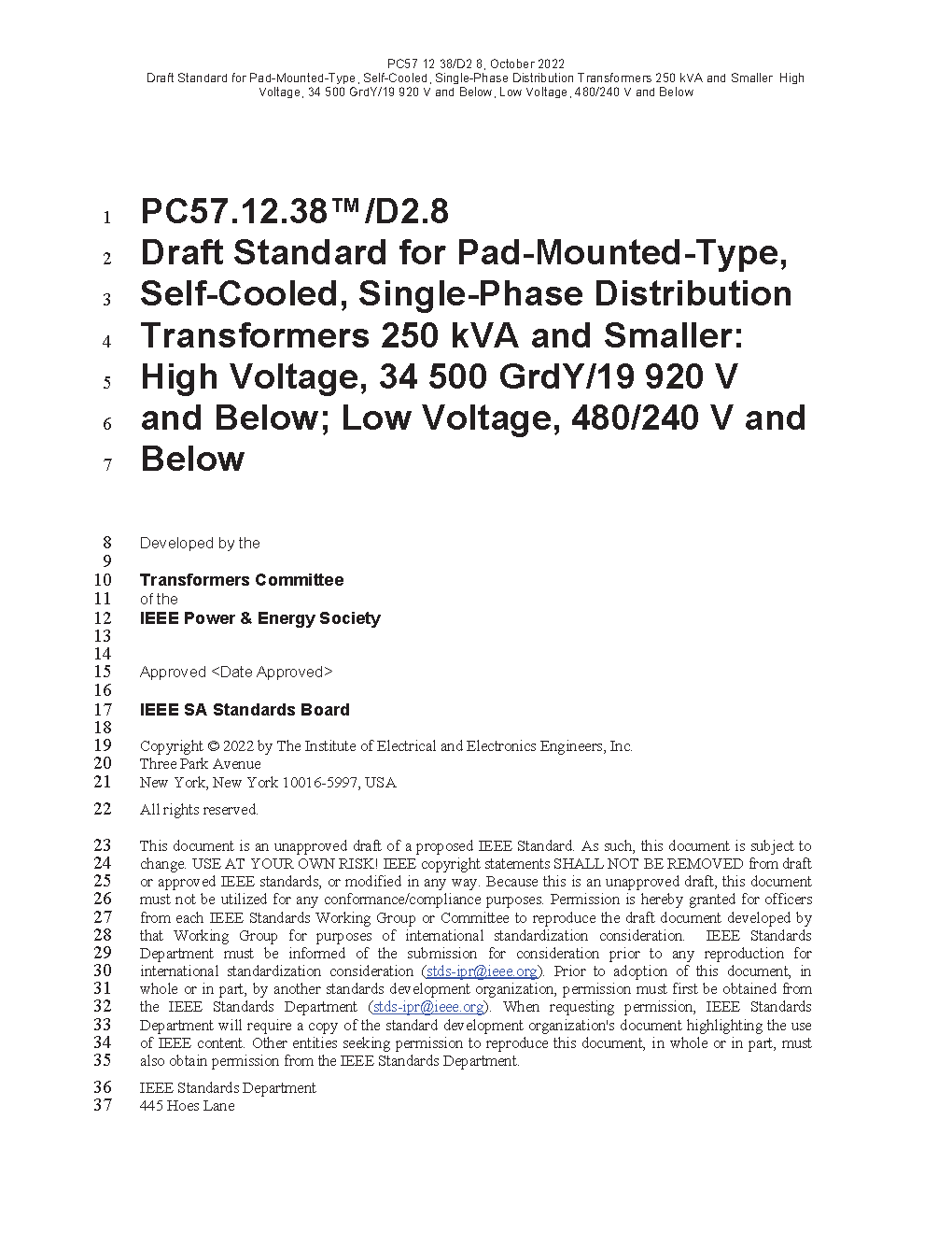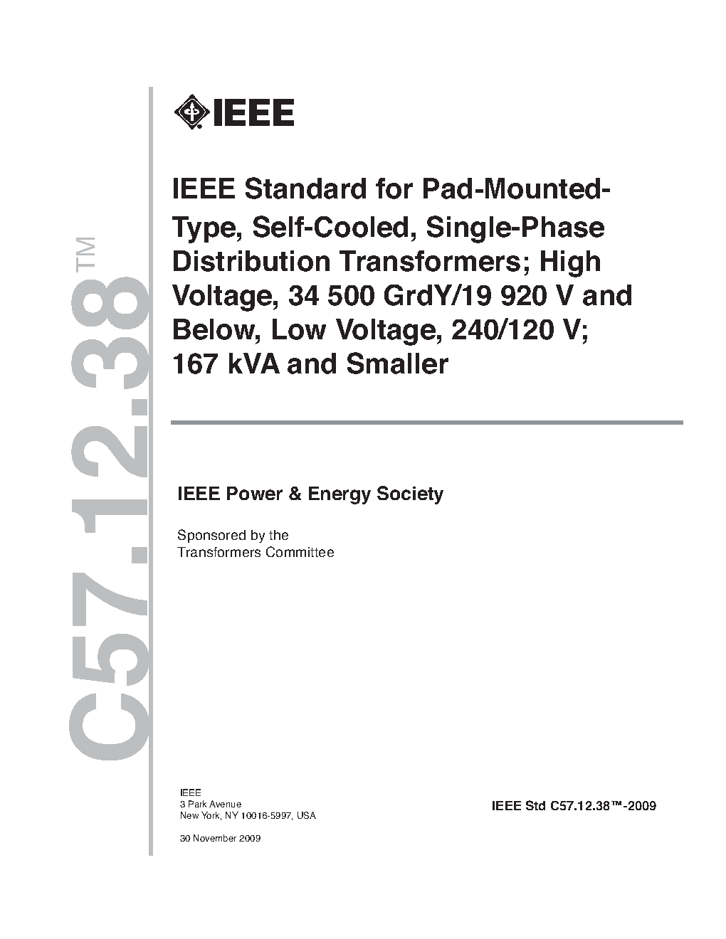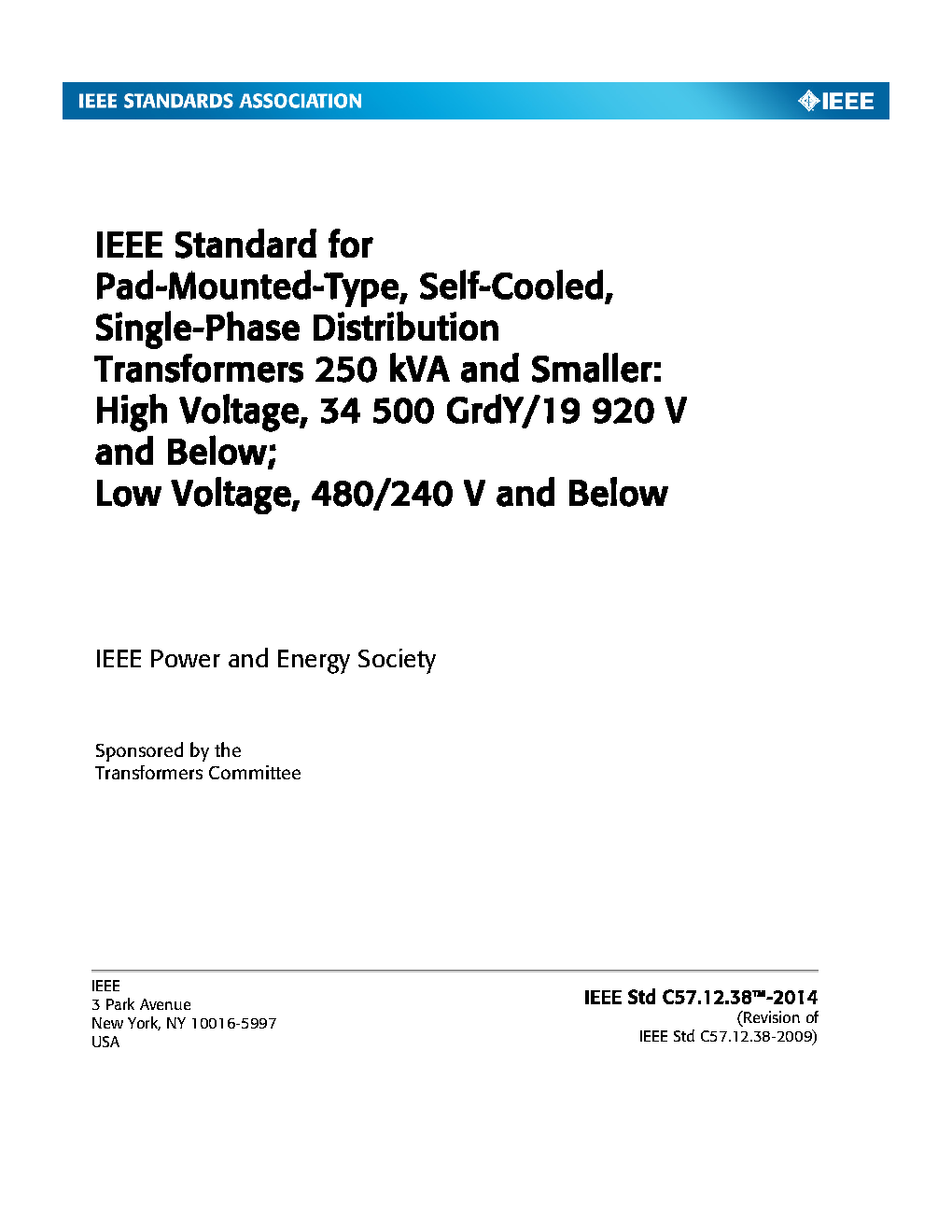 IEEE Standard for Pad-Mounted-Type, Self-Cooled, Single-Phase Distribution Transformers 250 kVA and Smaller: High Voltage, 34 500 GrdY/19 920 V and Below; Low Voltage, 480/240 V and Below