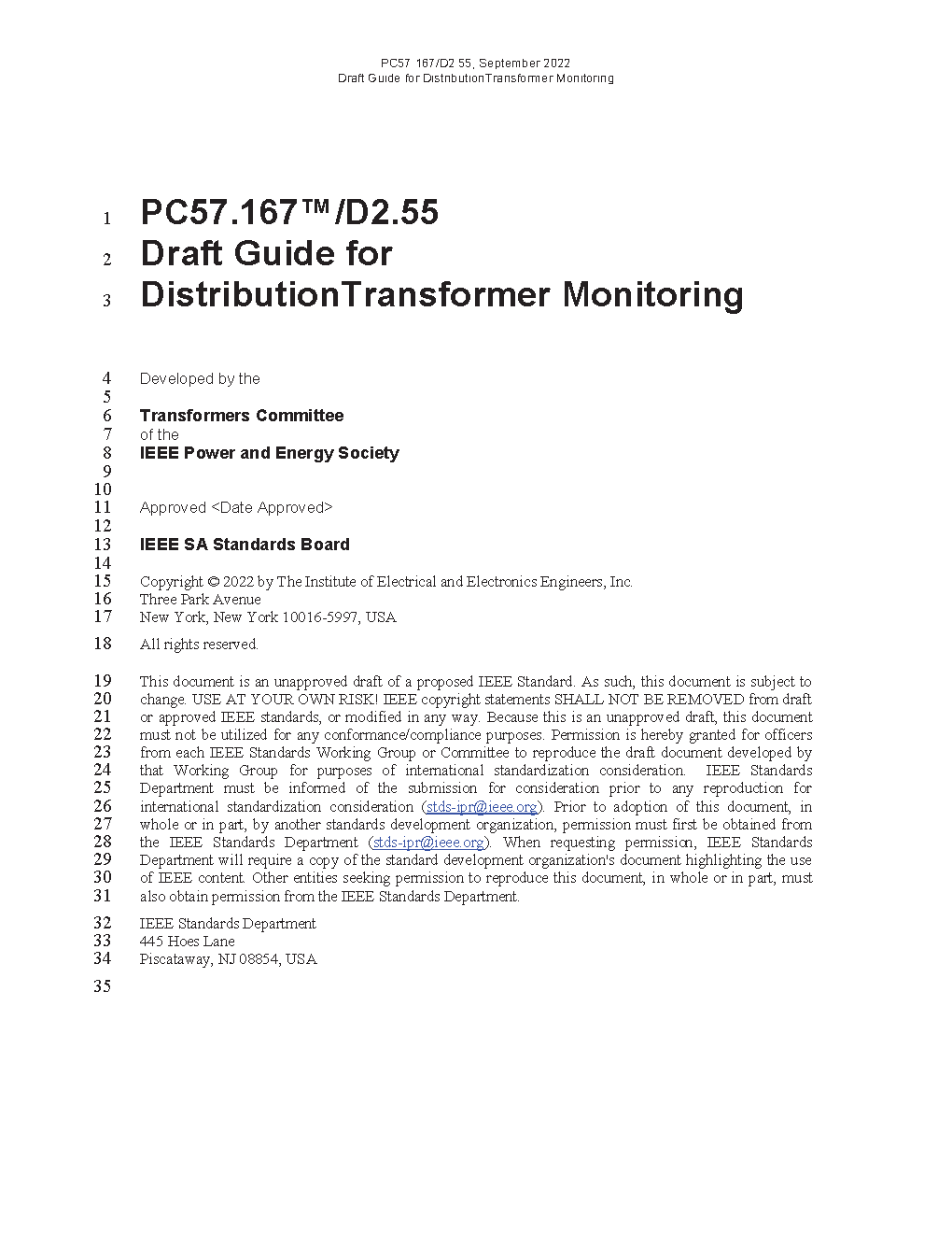 This guide covers identification of the key measurable parameters that can be monitored for obtaining an indication of the condition of liquid-immersed distribution transformers.