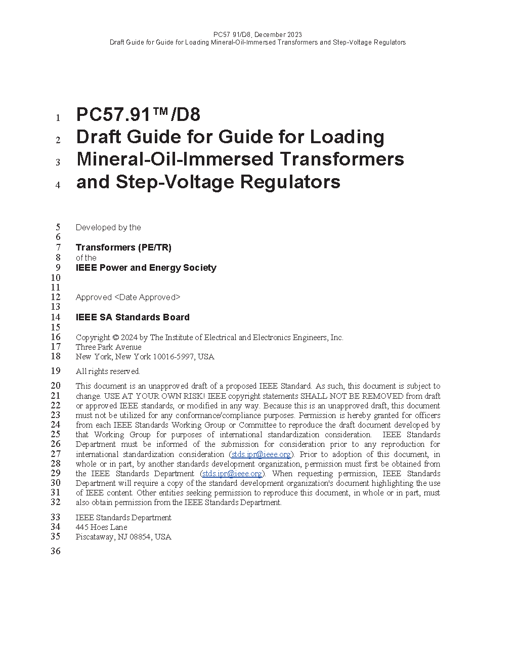 This guide provides recommendations for loading mineral-oil-immersed transformers and step-voltage regulators with insulation systems rated for a 65 °C average winding temperature rise at rated load. This guide applies to transformers manufactured in accordance with IEEE Std C57.12.001 and tested in accordance with IEEE Std C57.12.90, and step-voltage regulators manufactured and tested in accordance with IEEE Std C57.15. Because a substantial population of transformers and step-voltage regulators with insulation systems rated for 55 °C average winding temperature rise at rated load are still in service, recommendations that are specific to this equipment are also included.