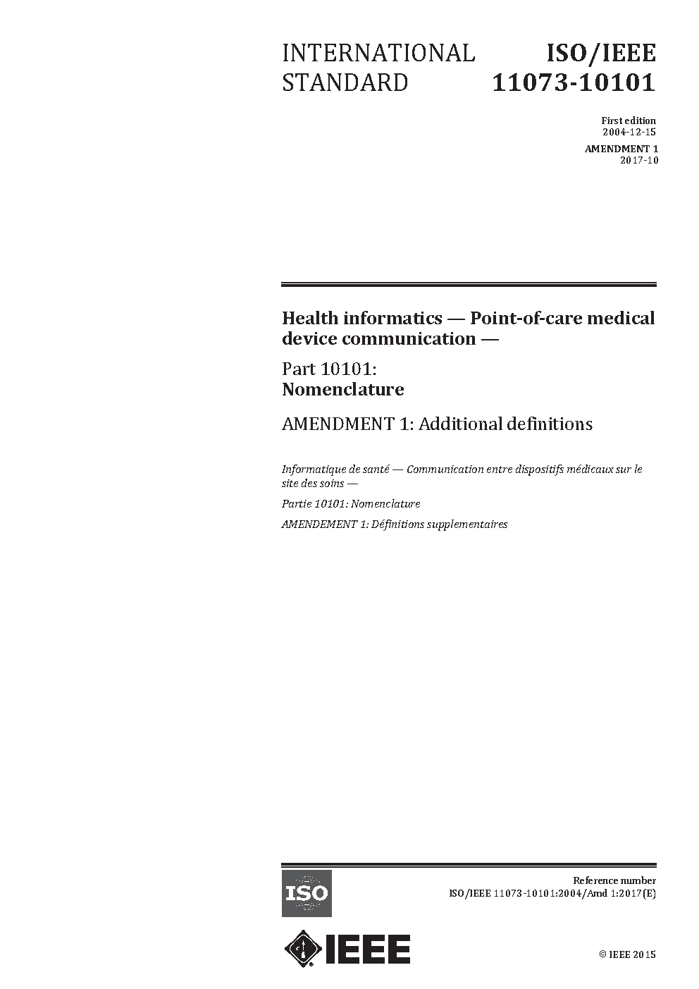 ISO/IEEE International Standard - Health informatics-Device interoperability-Part 10101: Point-of-care medical device communication-Nomenclature