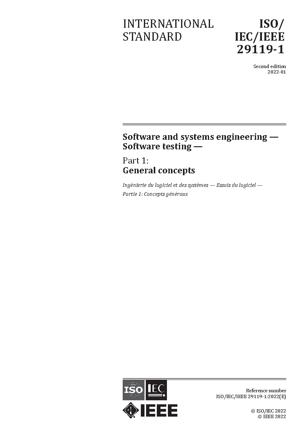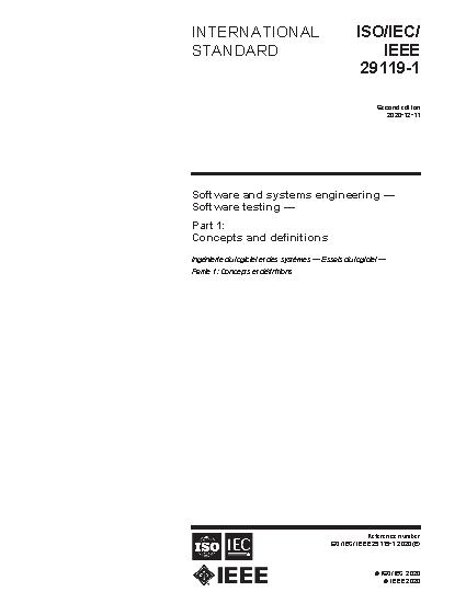 This part of ISO/IEC/IEEE 29119 specifies definitions and concepts in software testing. It provides definitions of testing terms and discussion of concepts key to the understanding of the ISO/IEC/IEEE 29119 series of software testing international standards.