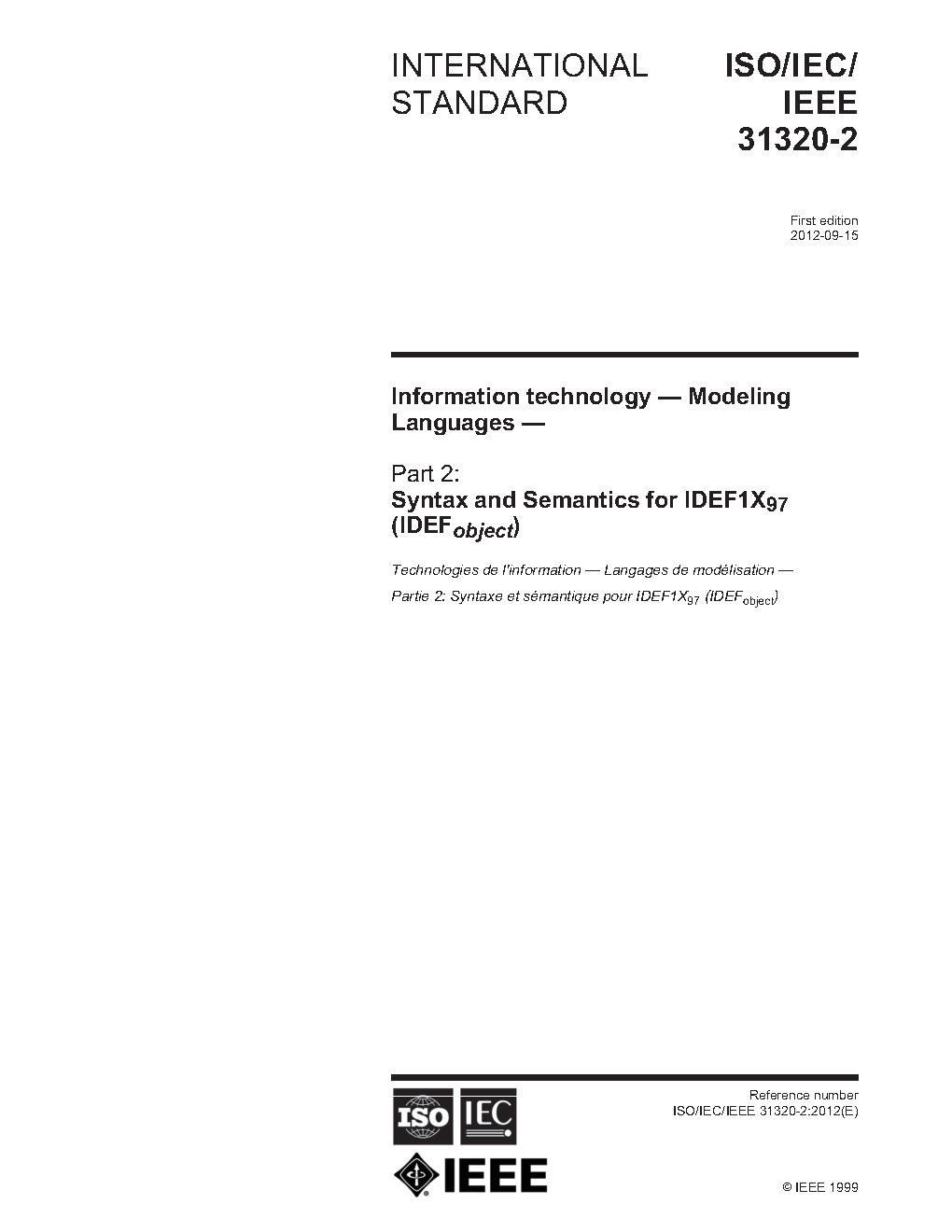 ISO/IEC/IEEE International Standard - Information technology -- Modeling Languages -- Part 2: Syntax and Semantics for IDEF1X97 (IDEFobject)