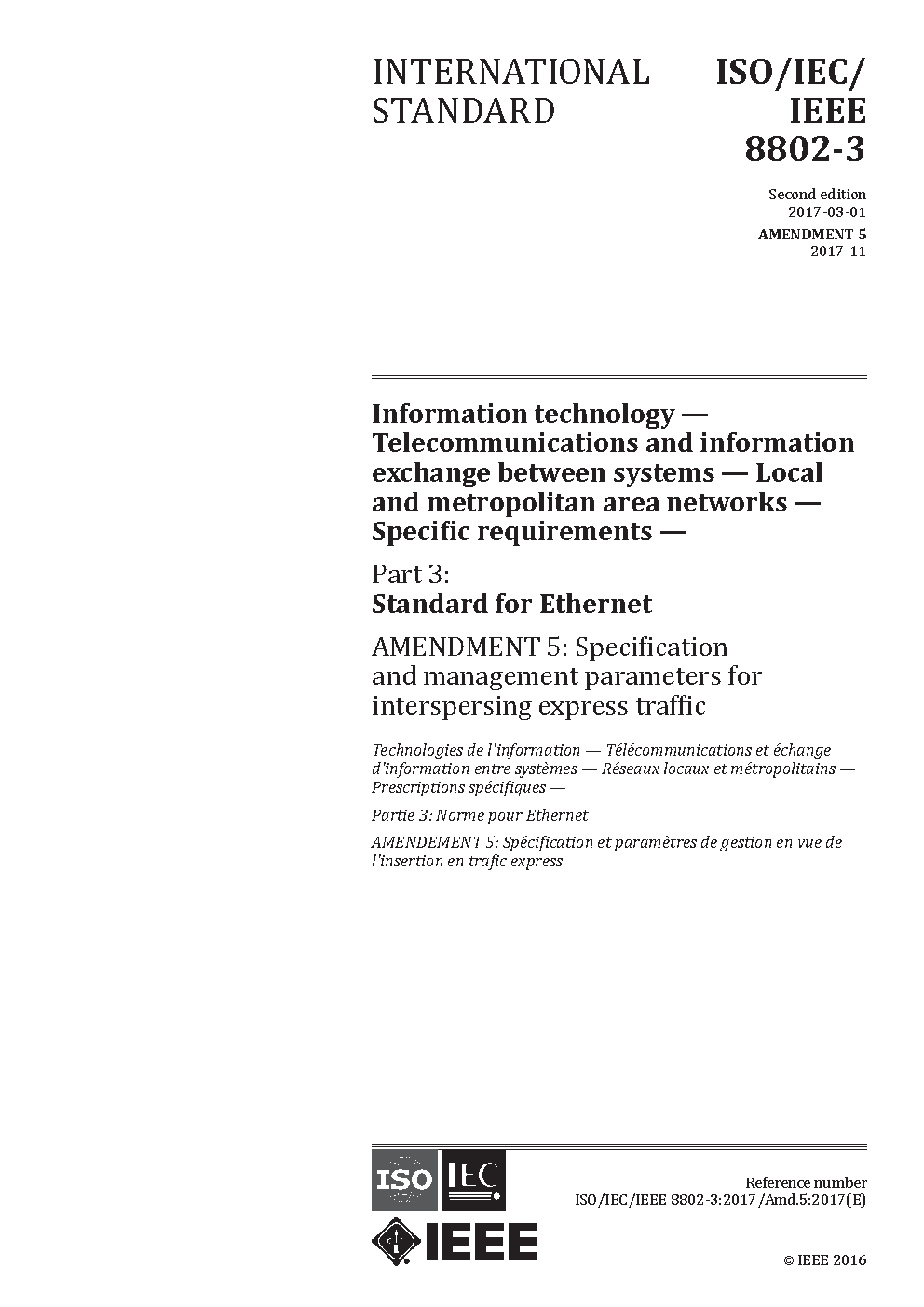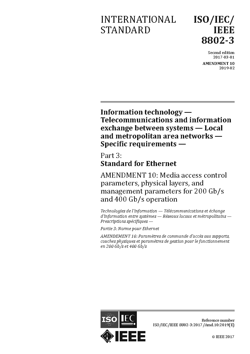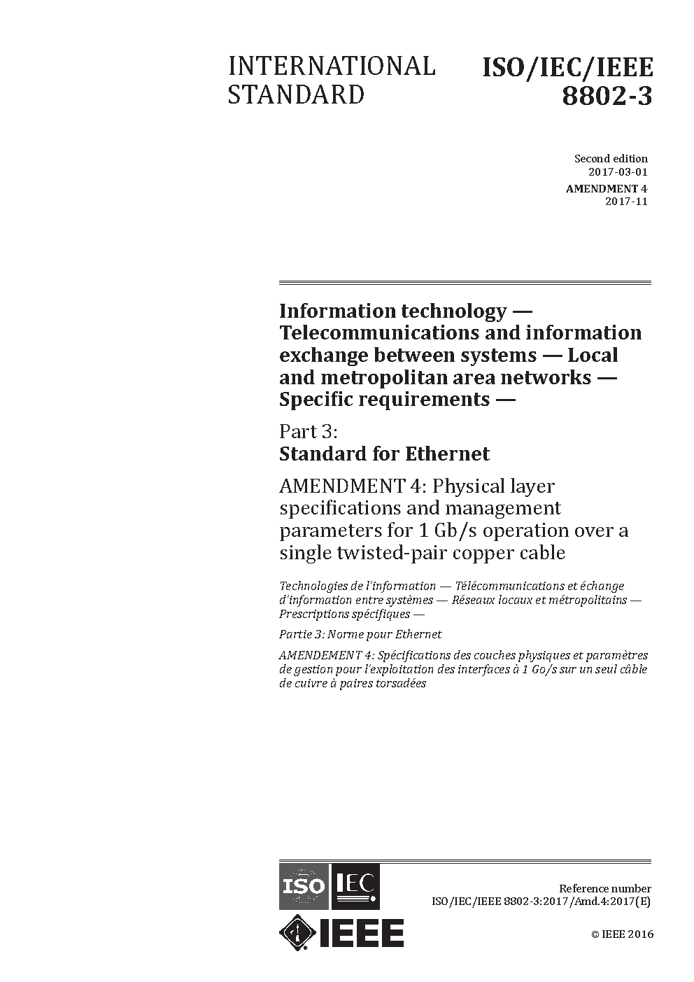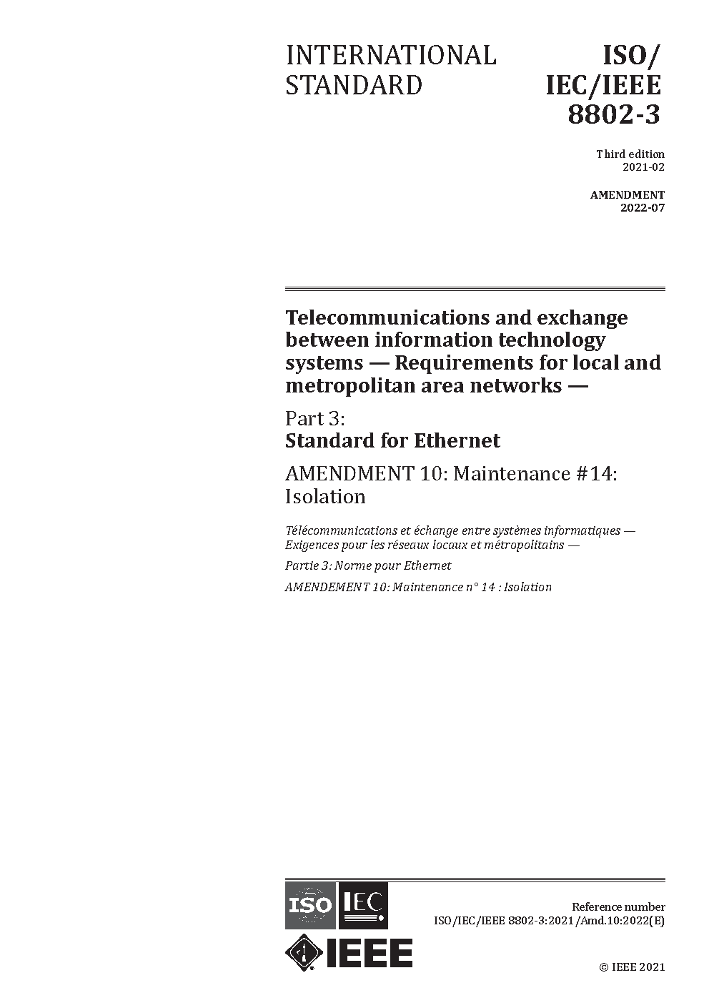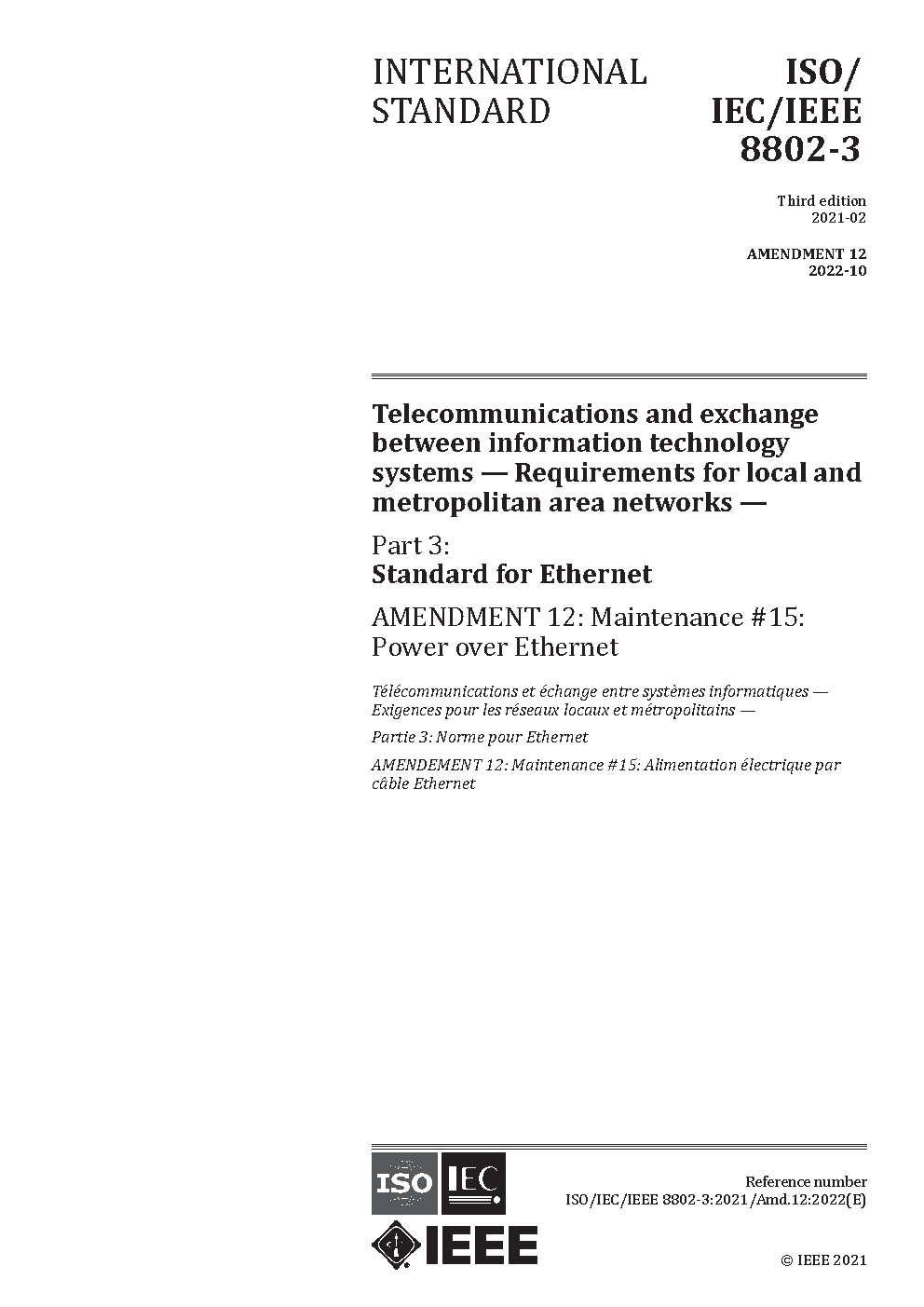 ISO/IEC/IEEE International Standard for Ethernet