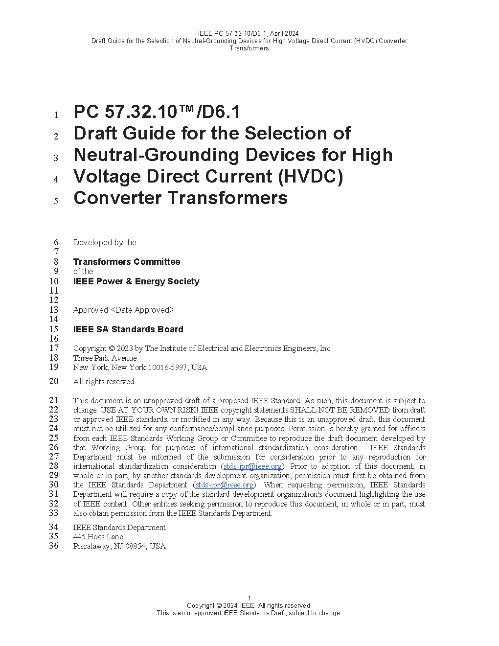 IEEE Draft Guide for the Selection of Neutral-Grounding Devices for High Voltage Direct Current (HVDC) Converter Transformers