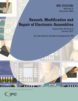 The IPC-7711/21 guide provides procedures for rework, repair and modification of printed board assemblies, including tools and materials, common procedures, coating removal and graphics to assist the user.