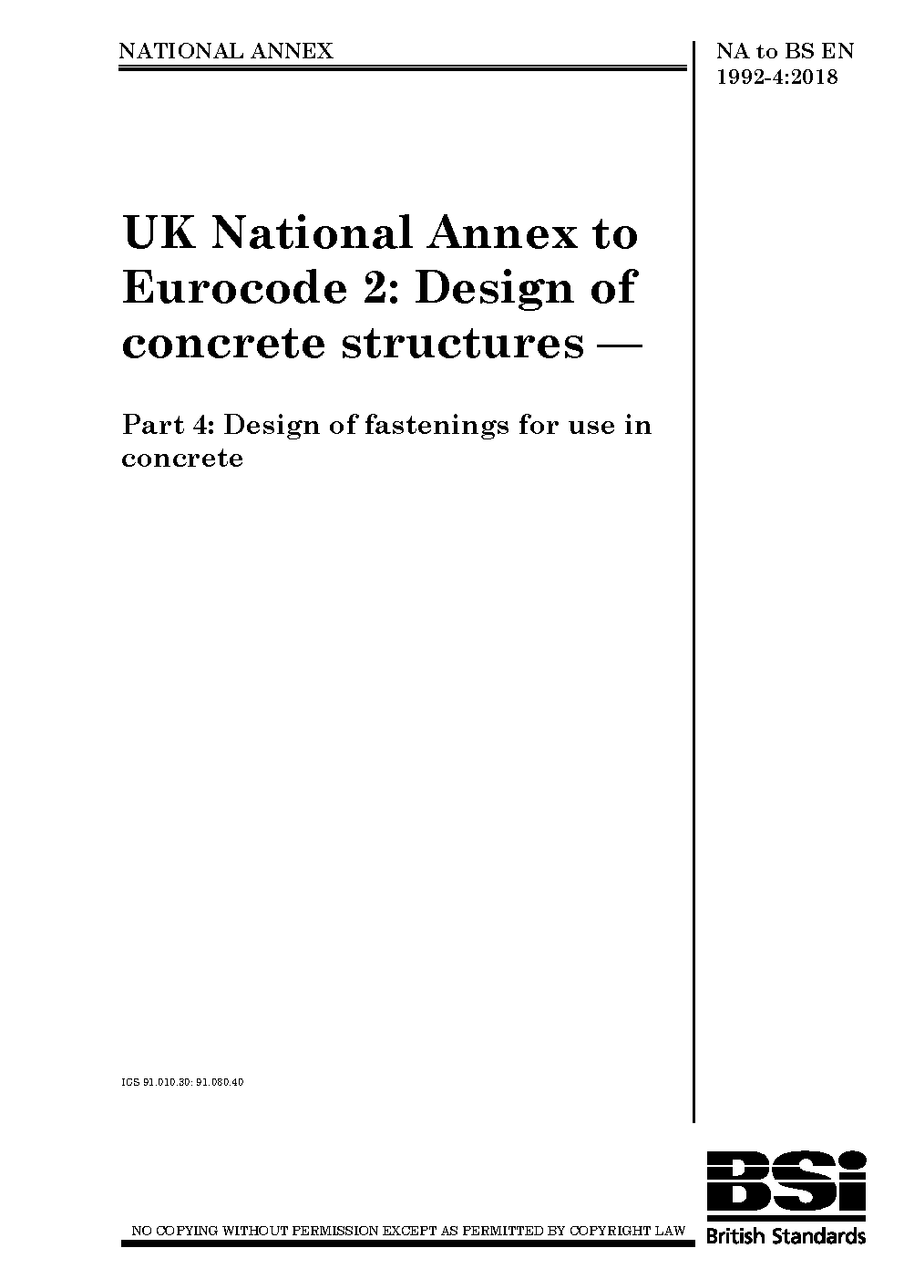 UK National Annex to Eurocode 2: Design of concrete structures fastenings for use in