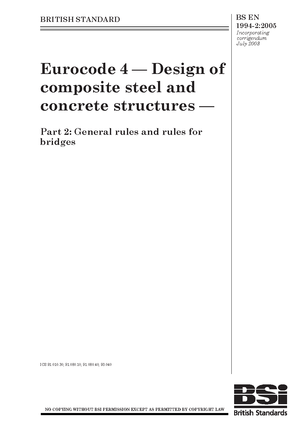 UK National Annex to Eurocode 4. Design of composite steel and concrete structures General rules for bridges