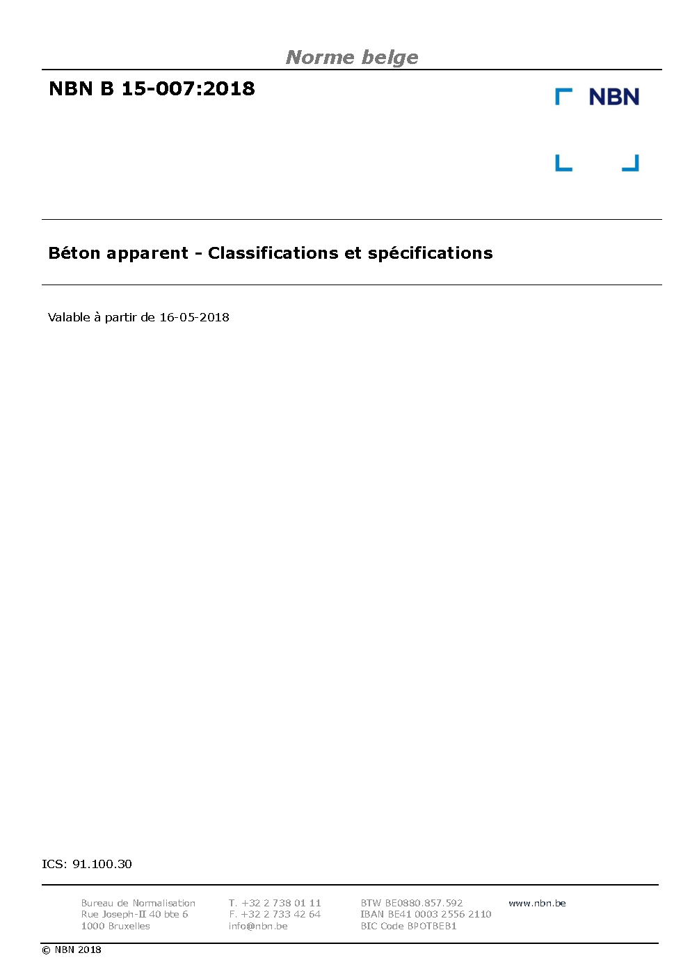 | Publisher | Bureau de Normalisation Belge (NBN) |