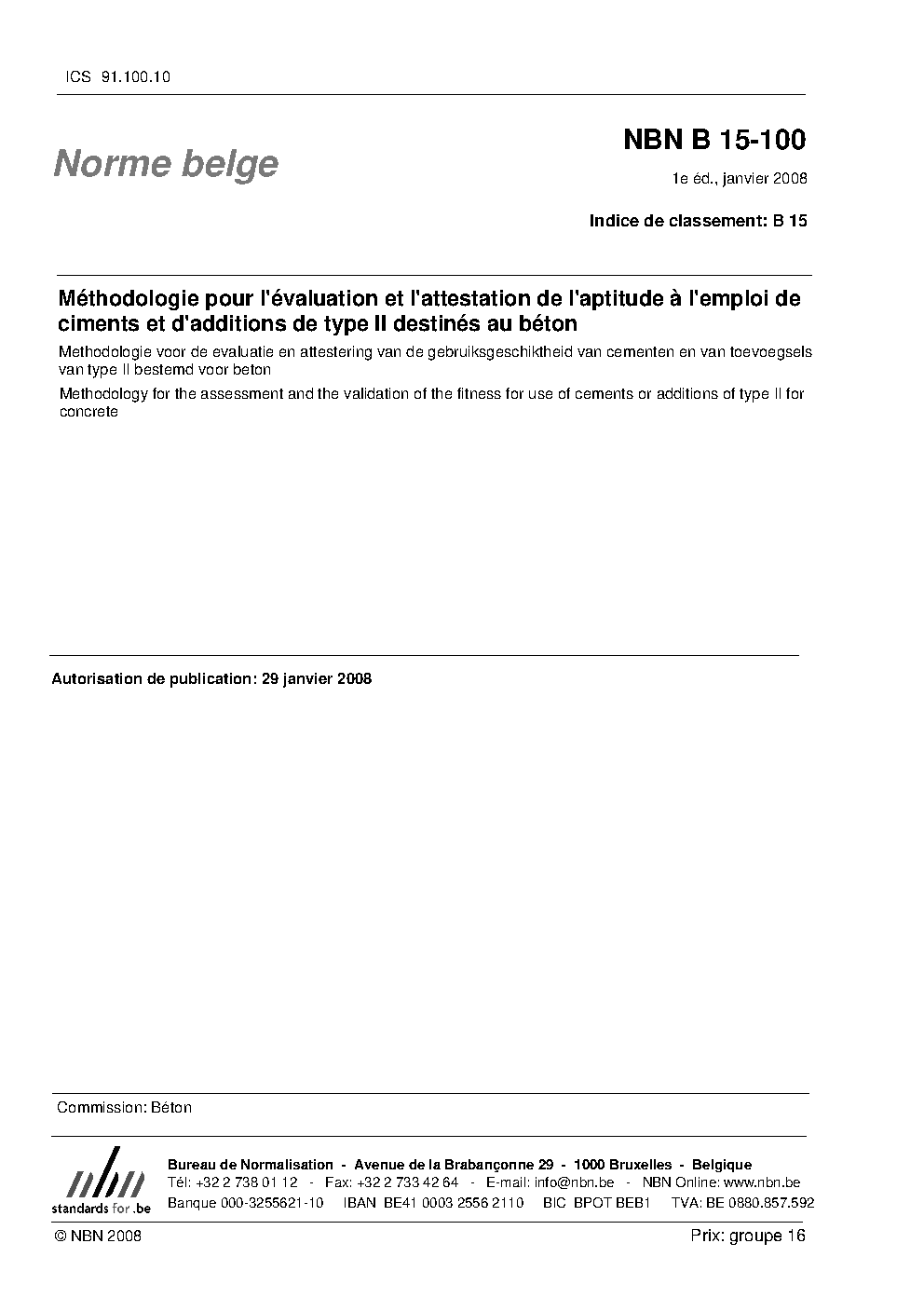| Publisher | Bureau de Normalisation Belge (NBN) |