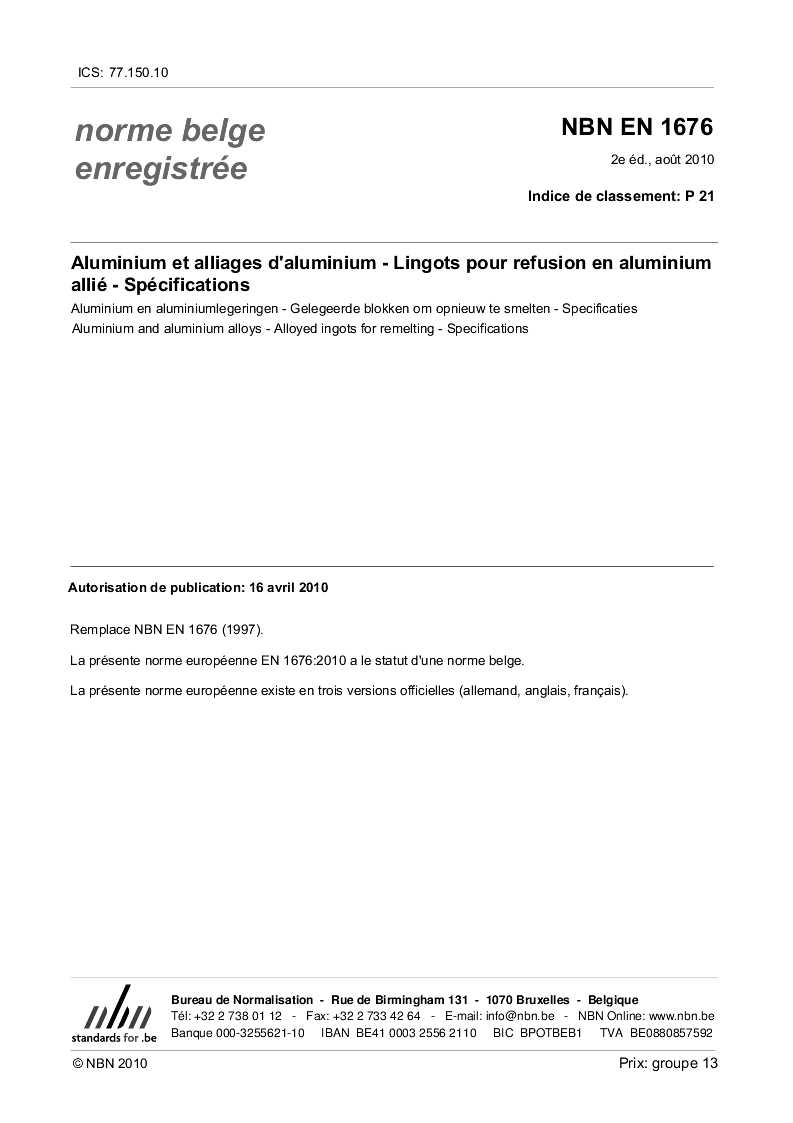 | Publisher | Bureau de Normalisation Belge (NBN) |