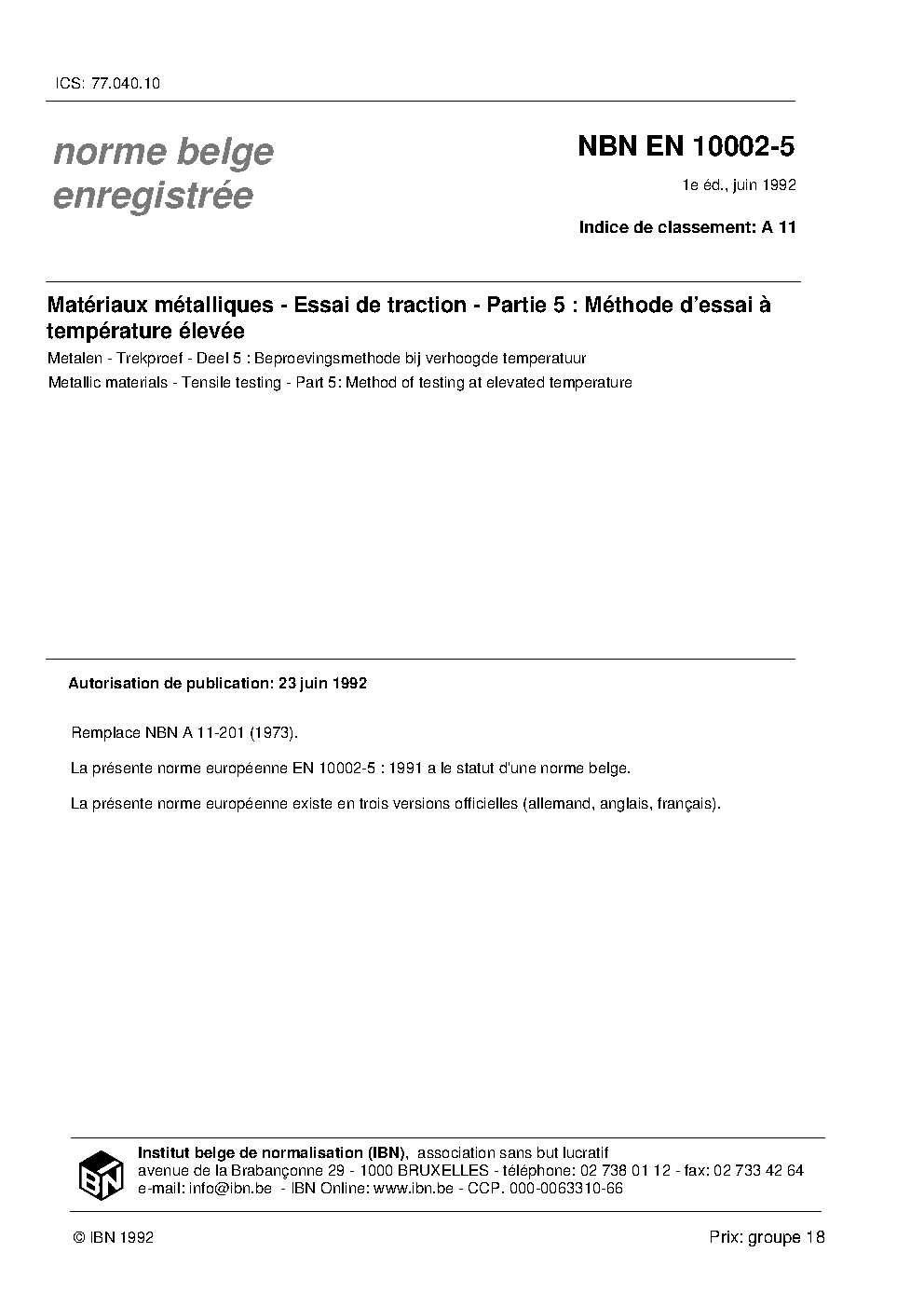 | Publisher | Bureau de Normalisation Belge (NBN) |