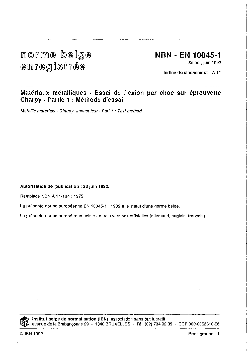 NBN EN 10045-1:1992