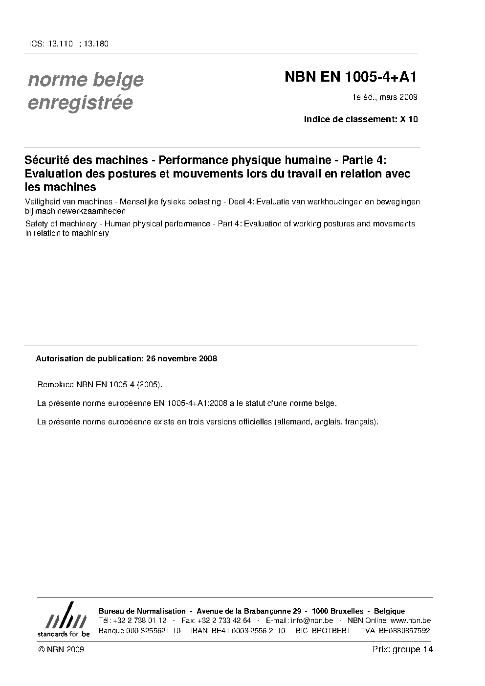| Publisher | Bureau de Normalisation Belge (NBN) |