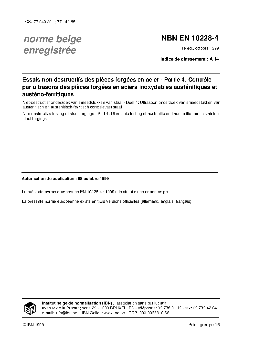 | Publisher | Bureau de Normalisation Belge (NBN) |