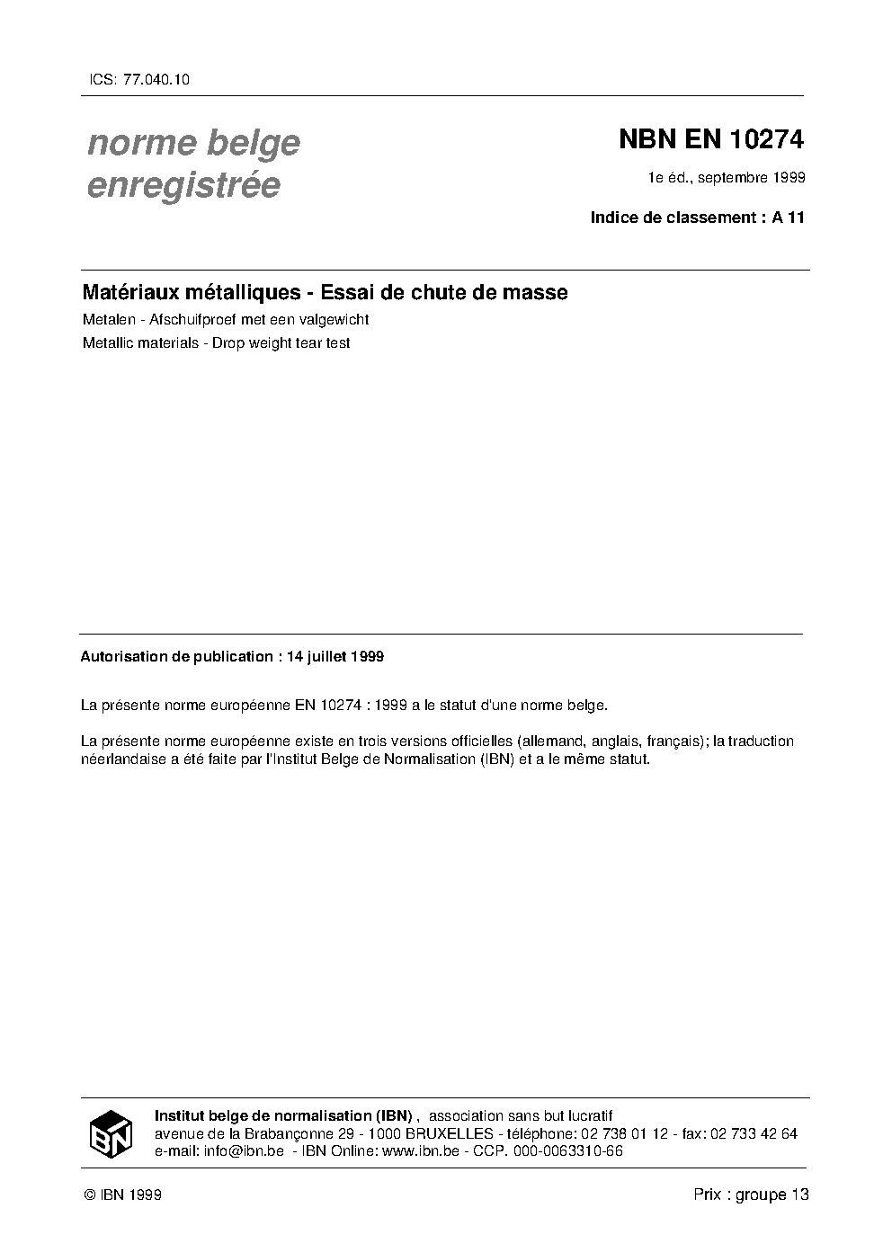 | Publisher | Bureau de Normalisation Belge (NBN) |