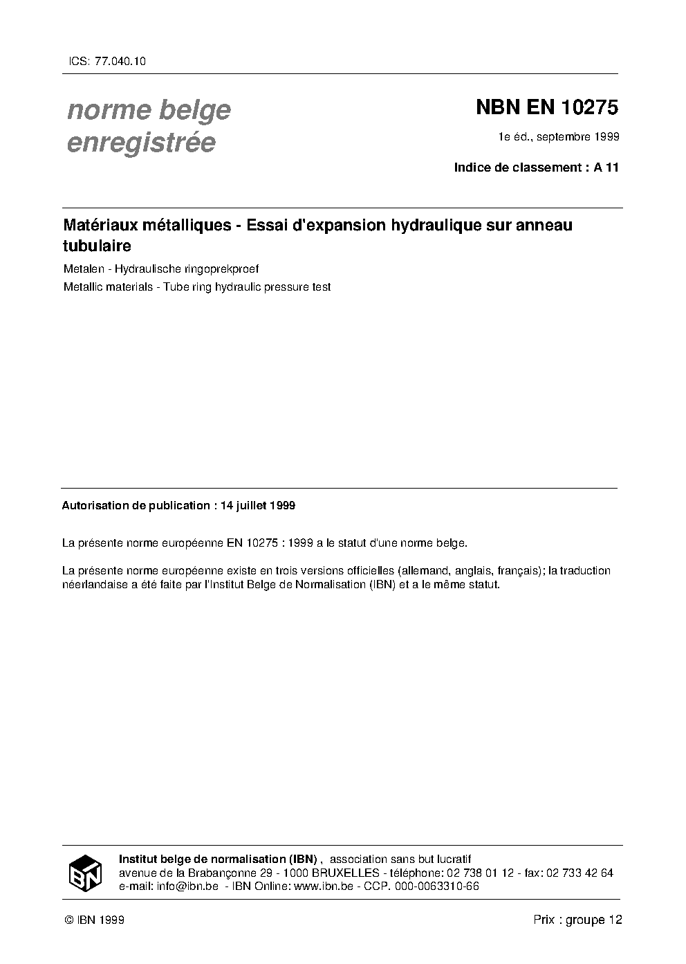 | Publisher | Bureau de Normalisation Belge (NBN) |