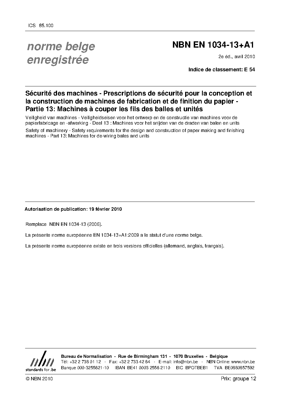 | Publisher | Bureau de Normalisation Belge (NBN) |