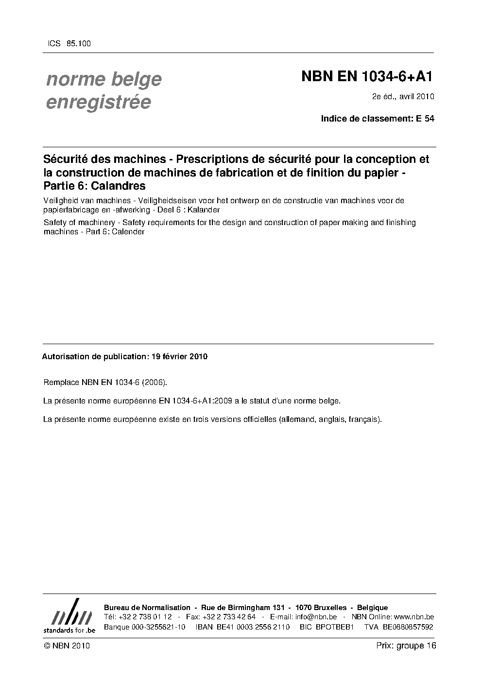 | Publisher | Bureau de Normalisation Belge (NBN) |