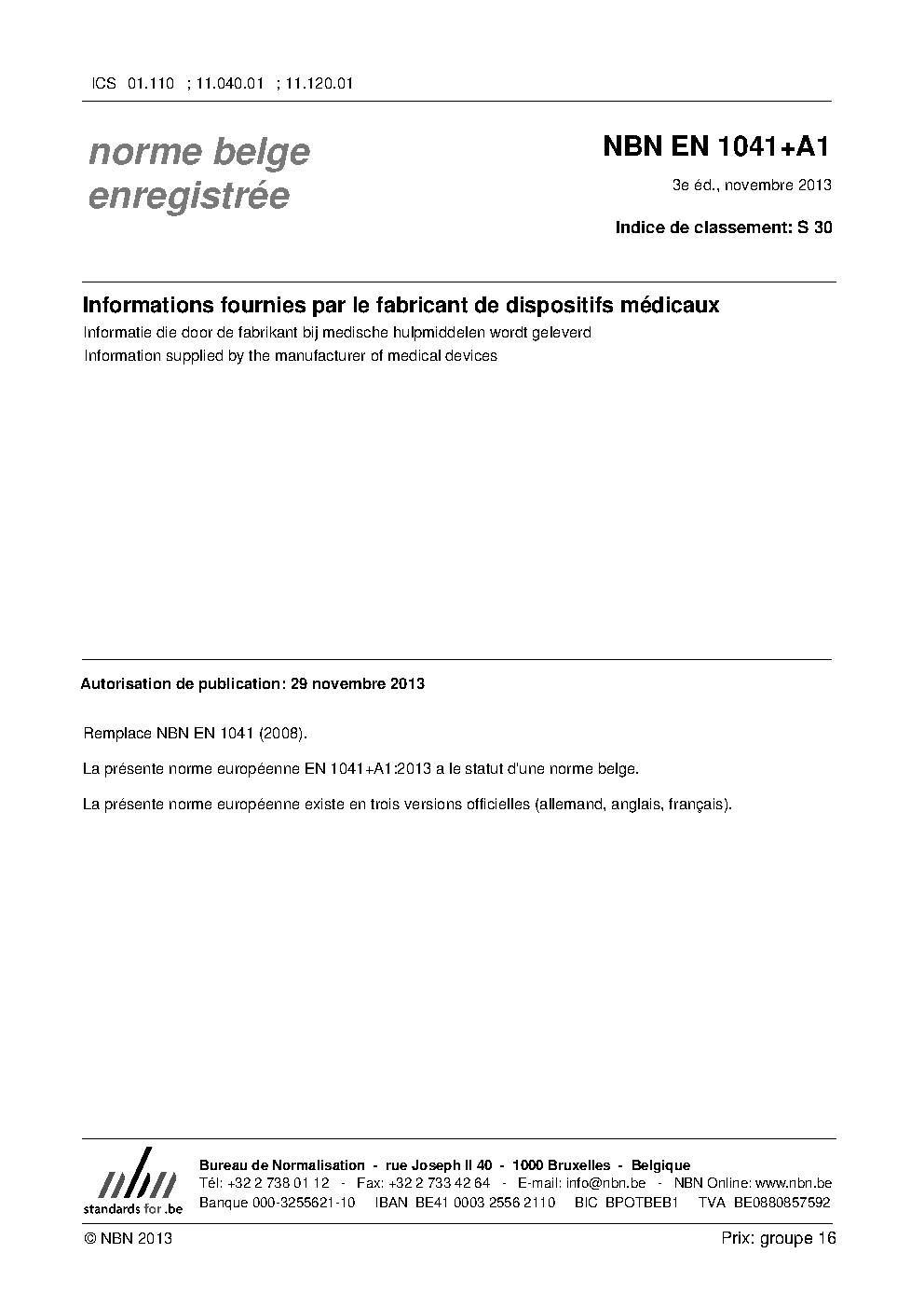 | Publisher | Bureau de Normalisation Belge (NBN) |