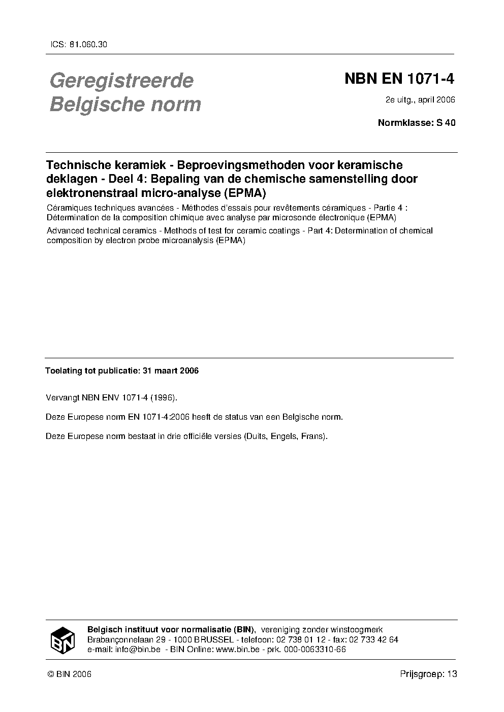 | Publisher | Bureau de Normalisation Belge (NBN) |