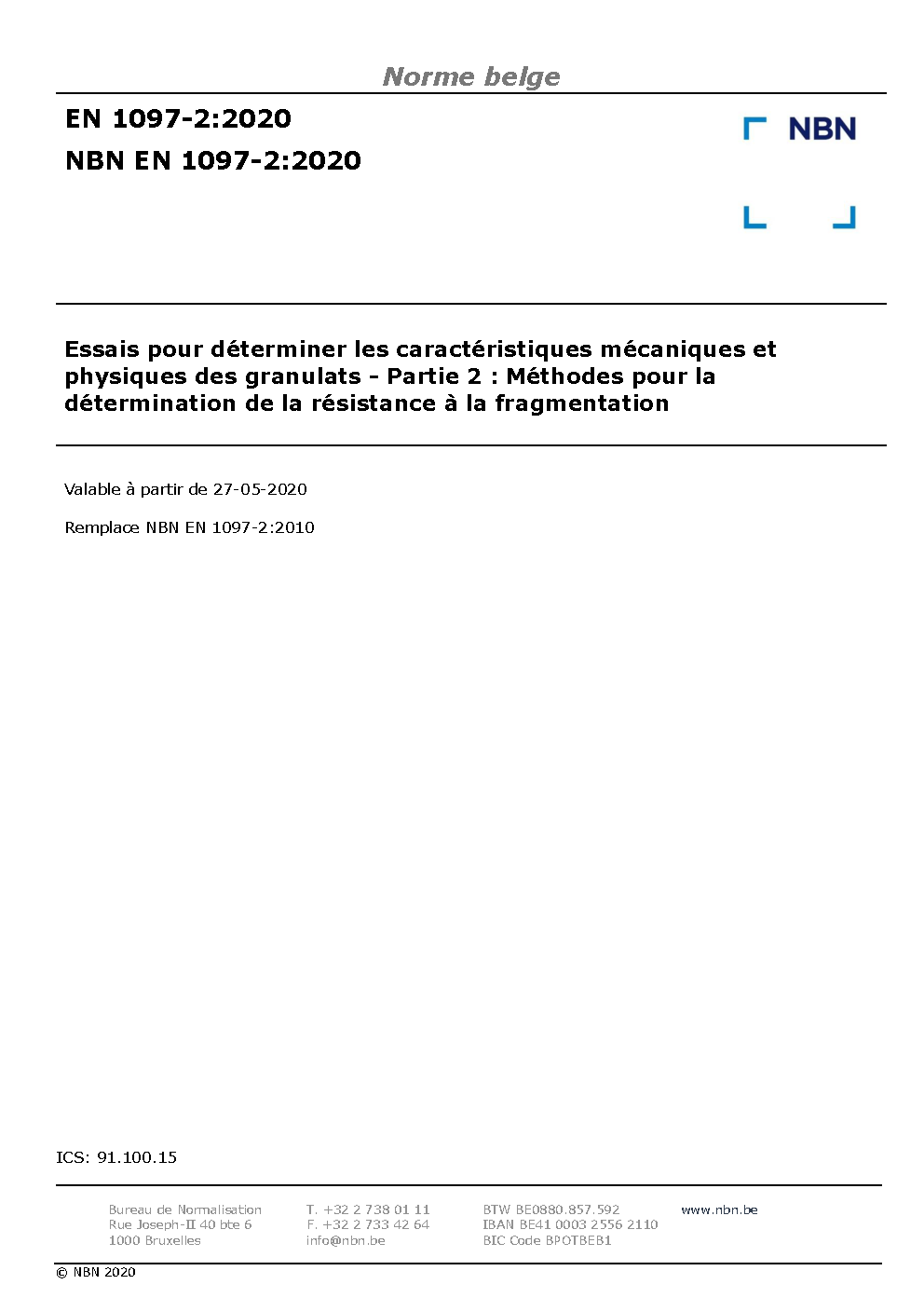 | Publisher | Bureau de Normalisation Belge (NBN) |