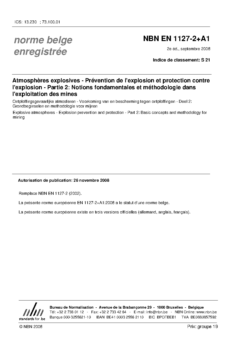| Publisher | Bureau de Normalisation Belge (NBN) |