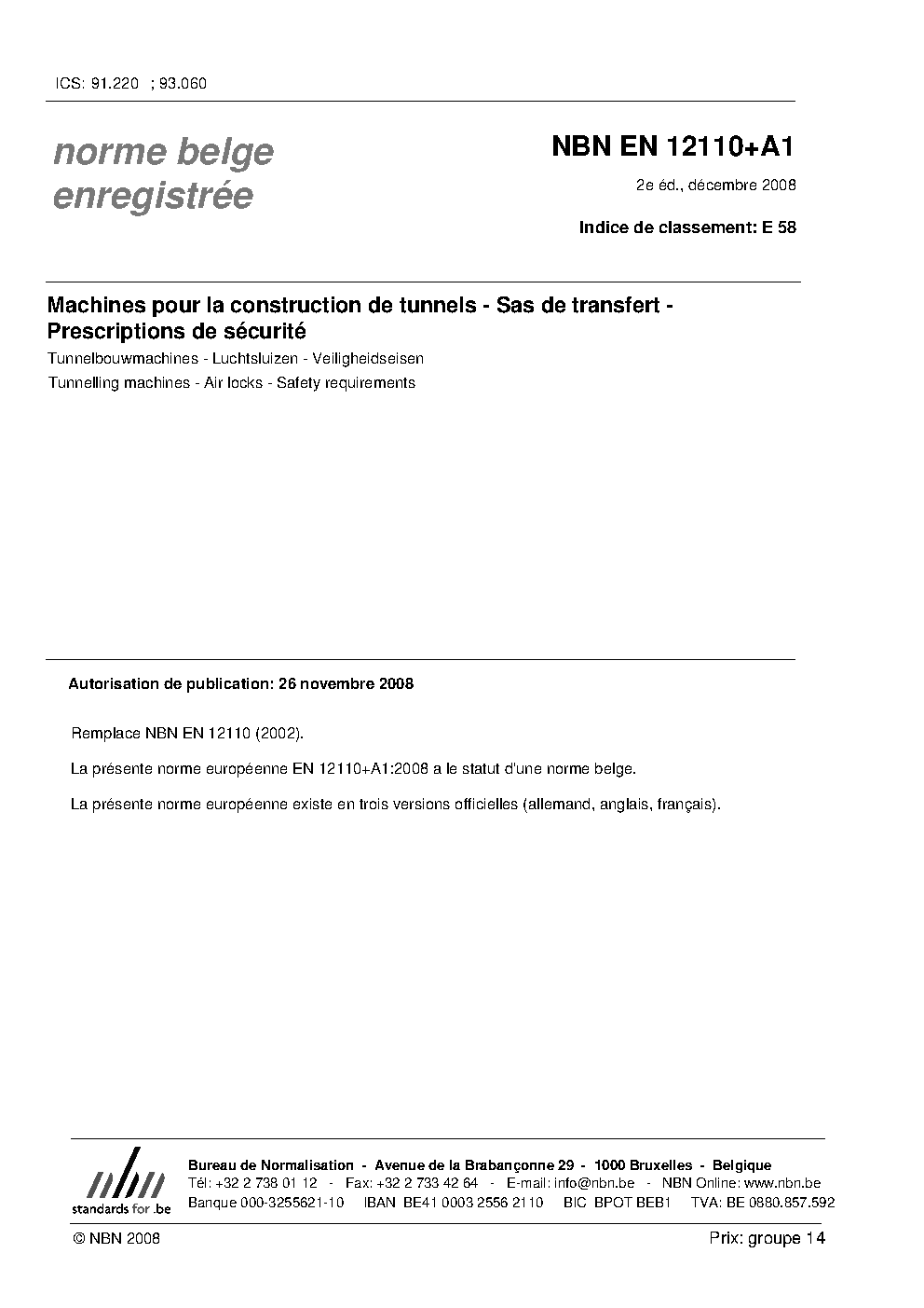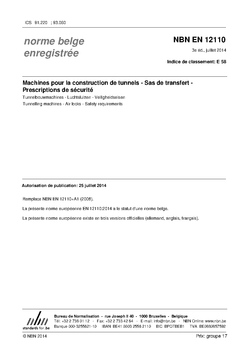 | Publisher | Bureau de Normalisation Belge (NBN) |