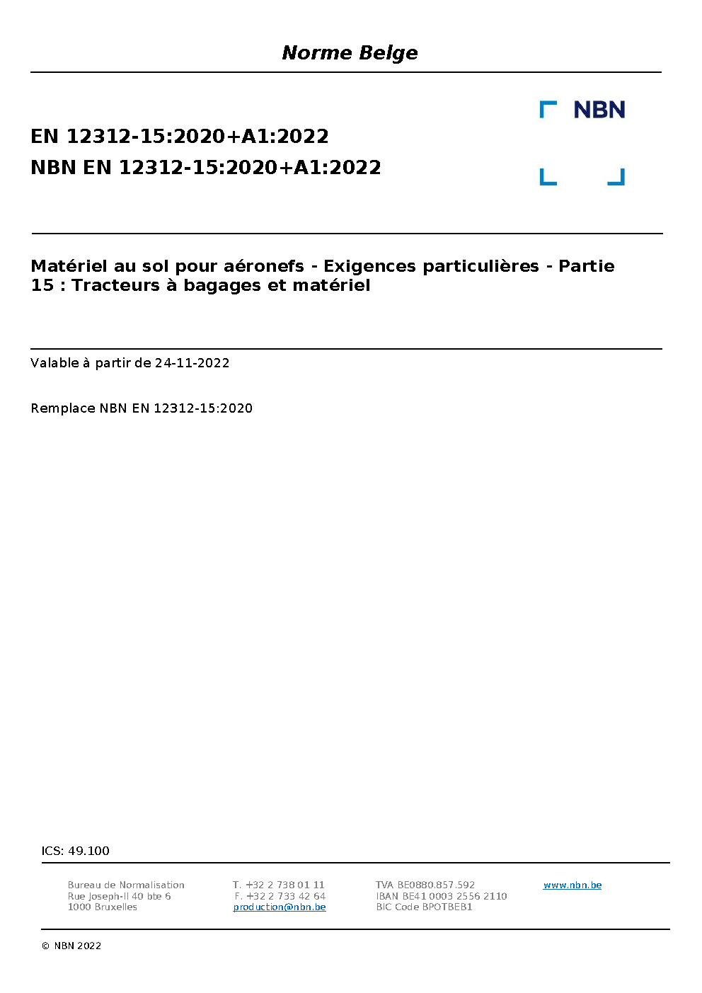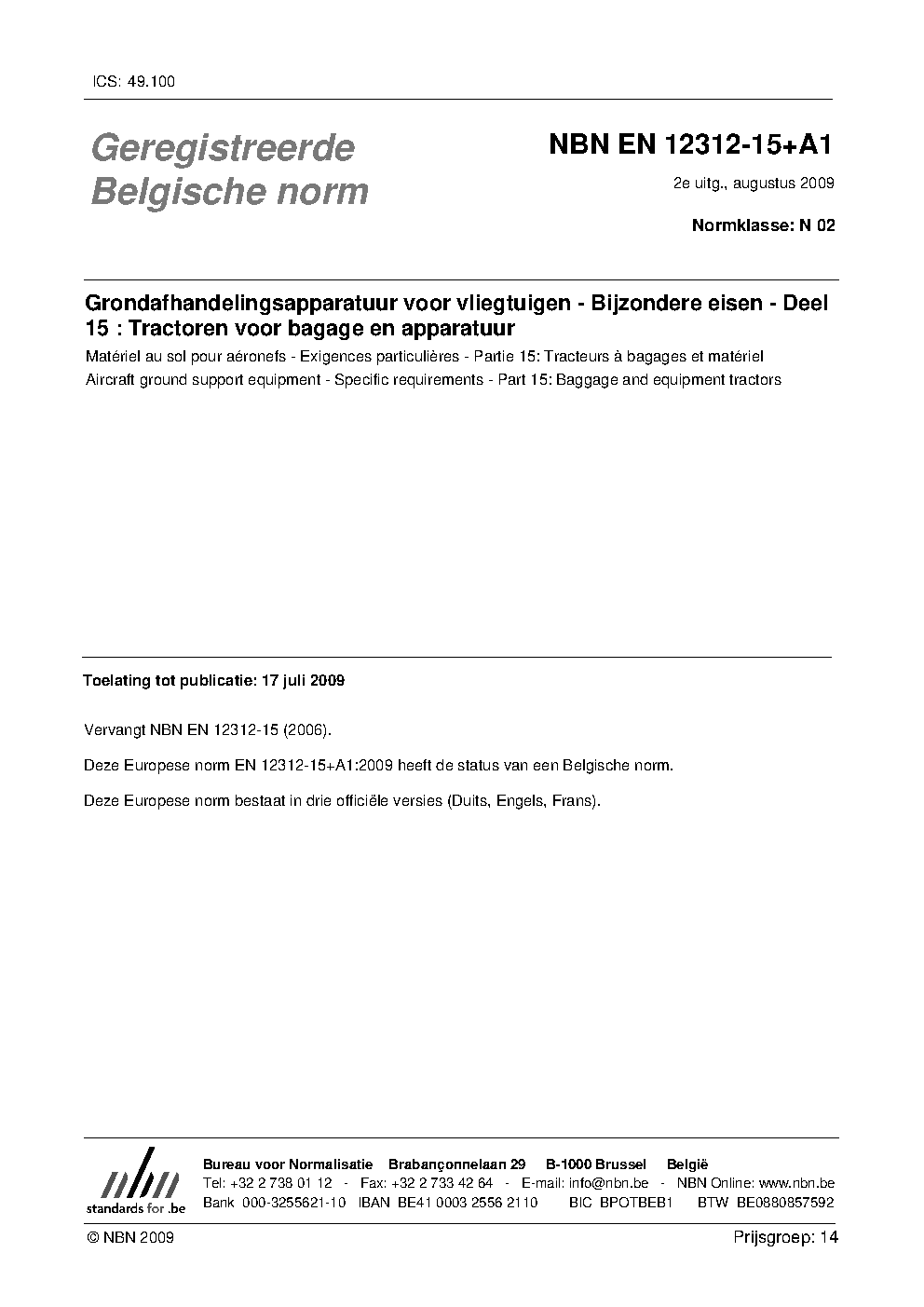 | Publisher | Bureau de Normalisation Belge (NBN) |