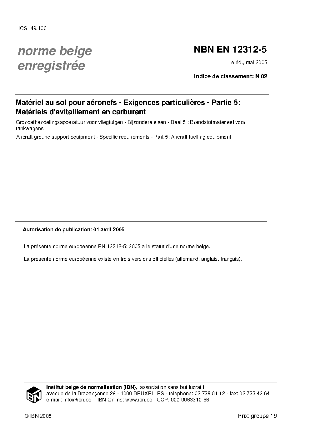 | Publisher | Bureau de Normalisation Belge (NBN) |