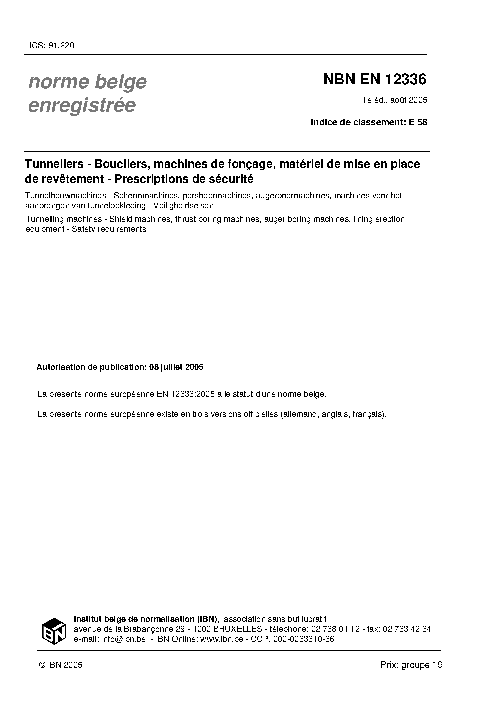| Publisher | Bureau de Normalisation Belge (NBN) |
