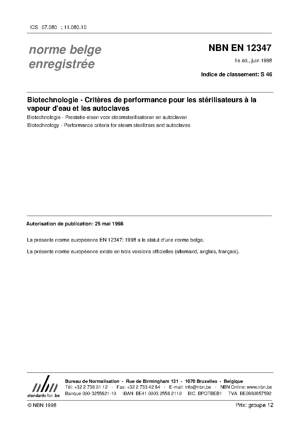 | Publisher | Bureau de Normalisation Belge (NBN) |