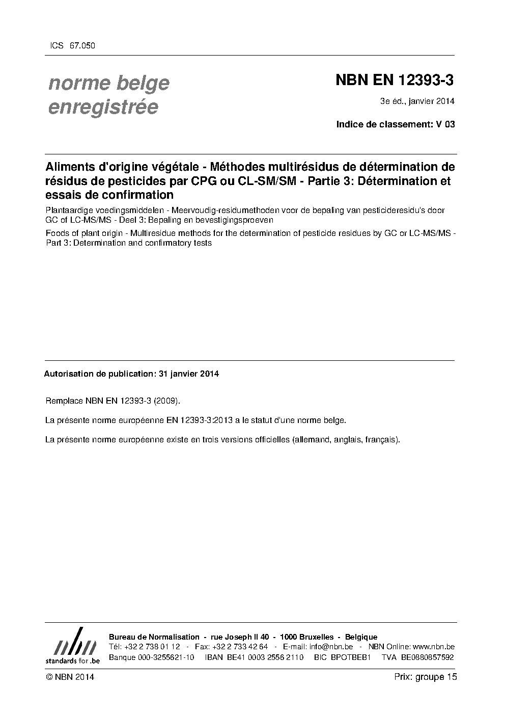 | Publisher | Bureau de Normalisation Belge (NBN) |